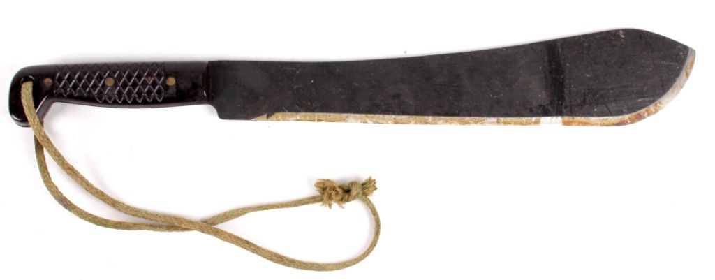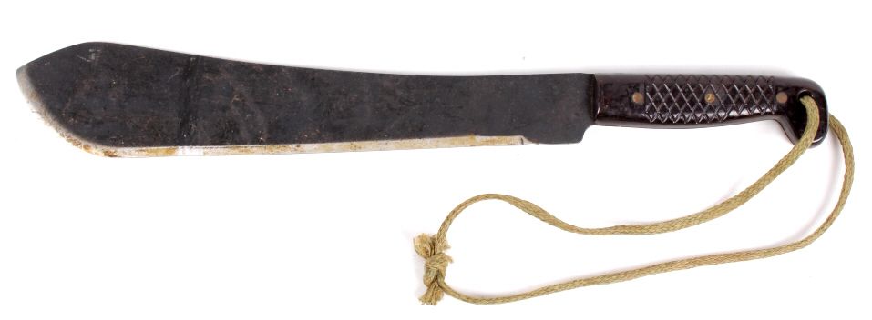 This is an orginal World War II 1945 Machete with a black blade and black handle. The blade is in great condition showing no dings and is marked D "arrow up logo" D DC - 45. This is a great rare British collectible.Measures 20.5" long.