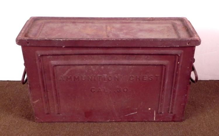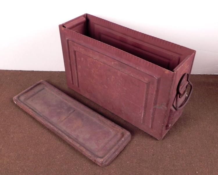 WWII 30 CAL. AMMUNITION STEEL CASE-ORIGU.S. AND FLAMING BOMB MARKED