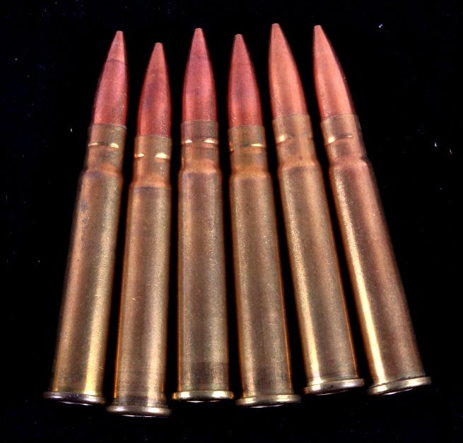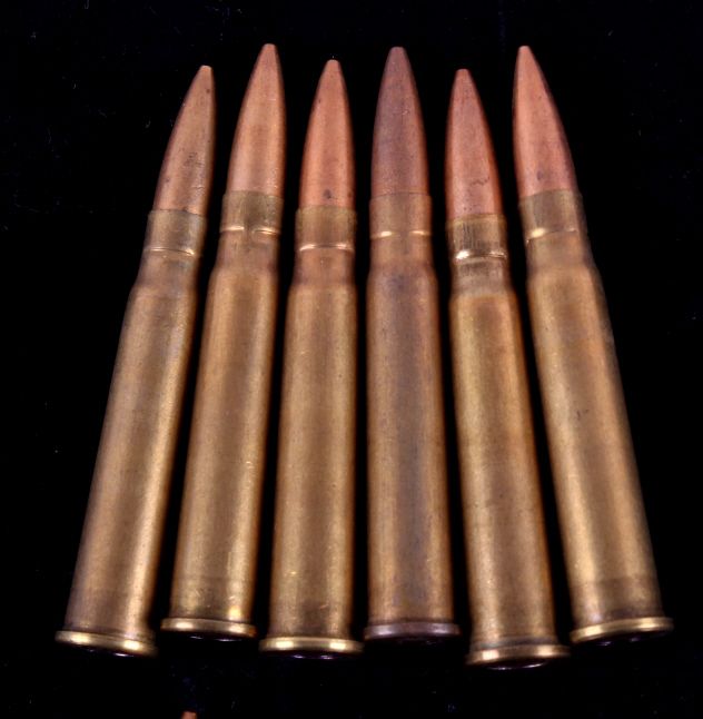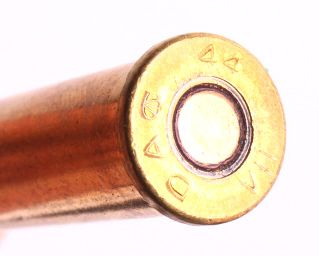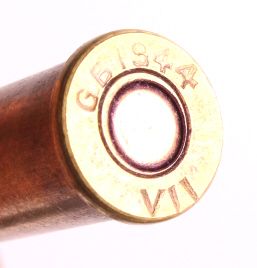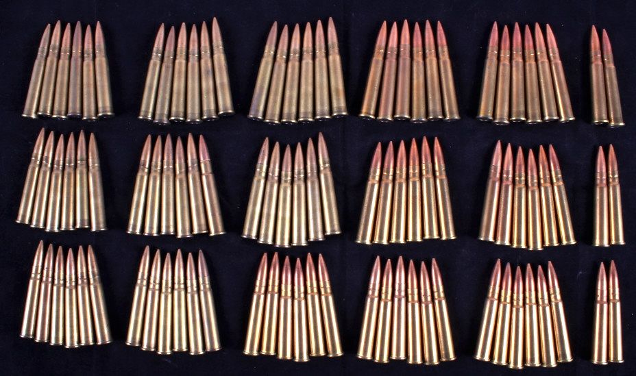 This lot includes 96 rounds of .303 British ammunition. About half the ammo is marked "GB 1944 VII" and the other half is marked "DA 44 VII". All the ammunition is in new, unfired condition.