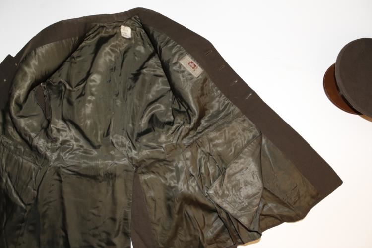 WWII 7th ARMY WARRANT OFFICER JG TUNIC-AND VISOR-COMPLETE---GREAT ORIGINAL INTACT WWII WARRANT OFFICER JUNIOR GRADE FULL DRESS TUNIC COMPLETE WITH 7th ARMY PATCH --4 RIBBON RIBBON BARS--WARRANT OFFICER AND JG INSIGNIAS--SIZE 39L--TAILORS LABEL--COMES WITH WO DRESS VOSOR HAT WITH PROPER INSIGNIA --SIZE 7 1/4--ALL IN GREAT CONDITION
