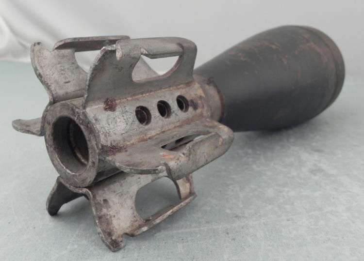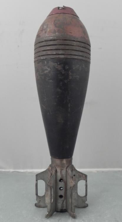 WWII 81MM-M17 MORTAR ROUND-12" TALL-MKD LLM-M17--A.C.C. 36 N.S.37 * * * 12" TALL-BODY AND TAILFIN IN GOOD CONDITION-WELL MARKED