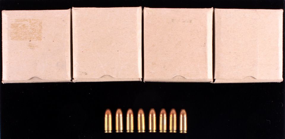 This lot features 254 rounds of 9mm ammunition. There are 4 boxes. 2 boxes contain 64 rounds and the other 2 have 63. Each round is marked "9 MM 43". All the ammunition is in new, unfired condition.