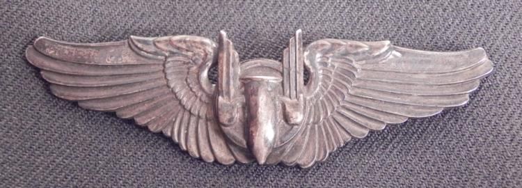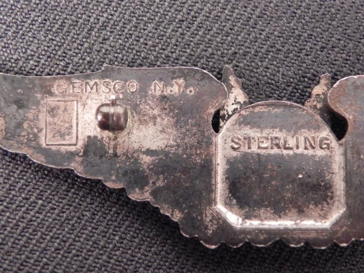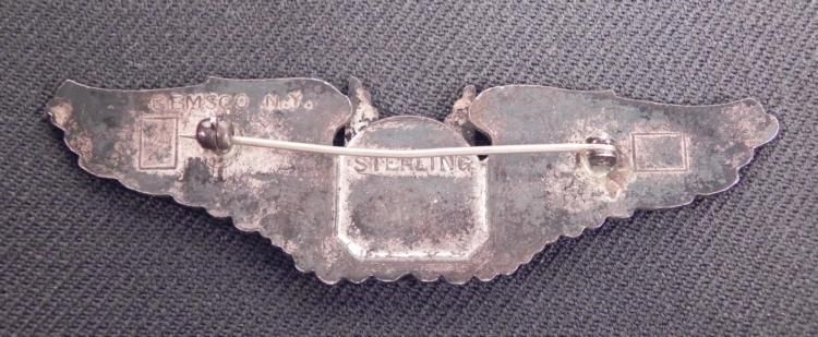 WWII AAF AERIAL GUNNER'S WINGS-STERLING-PINBACK ORIG--3" * * BEAUTIFUL PATINA ON THESE WINGS -NICE ORIGINAL FROM AERIAL GUNNER--MARKED GEMSCO NY AND STERLING *