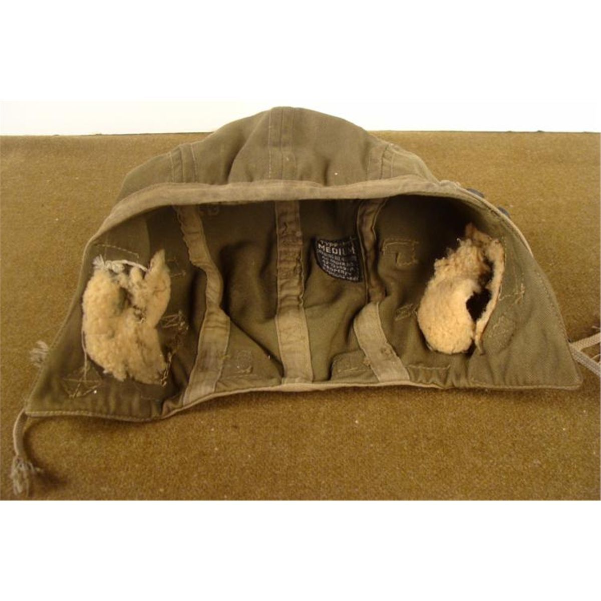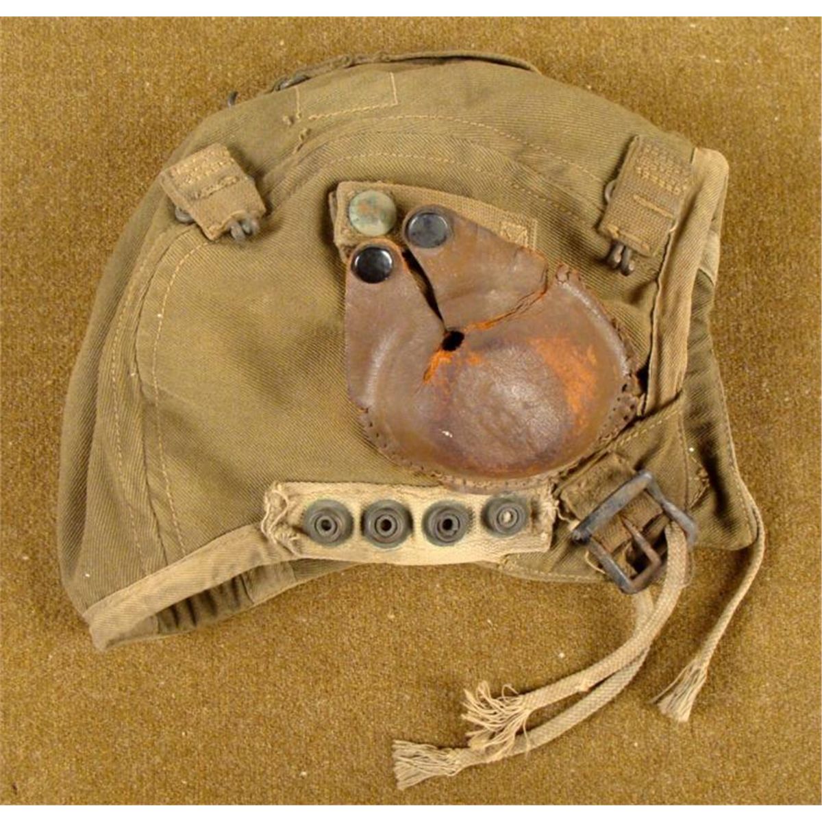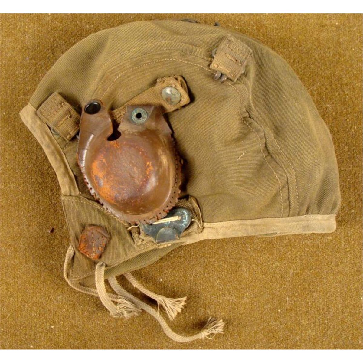 OFFERED HERE IS WWII AAF U.S. TYPE A-9 KHAKI CANVAS FLIGHT HELMET, SIZE MEDIUM. IT HAS THE ID TAG INSIDE AND SHOWS GREAT DEAL OF DAMAGE. THE FLIGHT HELMET NEEDS SOME SERIOUS TLC... * * * *