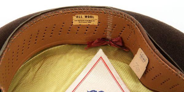 A genuine WWII Fliers crusher hat retaining original store tags in mint condition and appearing to have never been worn, and what is best is it is a rare large size a 7 and 5/8, moth free, wool cover, Bancroft maker.