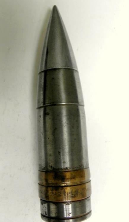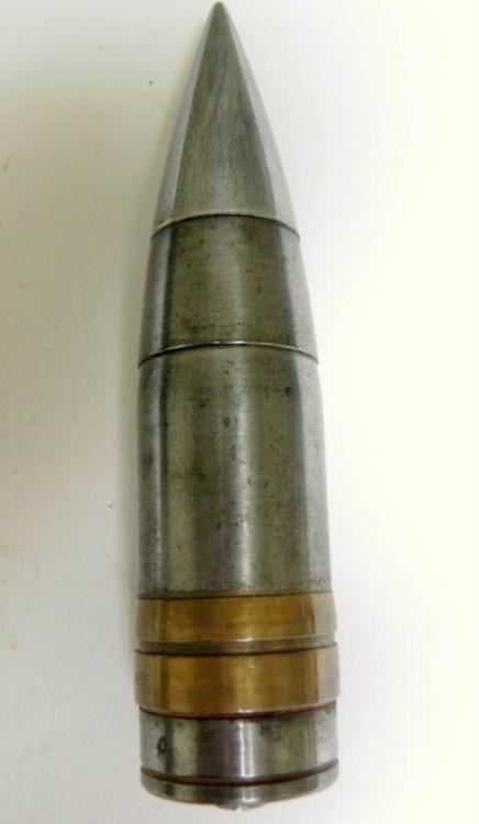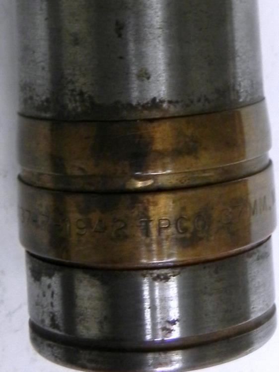 OFFERED HERE IS A WWII ARTILLERY HEAD-37MM-M51--1942-BRASS & STEEL. GREAT LOOKING PIECE OF WWII ARTILLERY--RING MARKED "LOT 293-23137-1942-TPCO-37MM-M51"; IT IS 6 1/2" LONG.