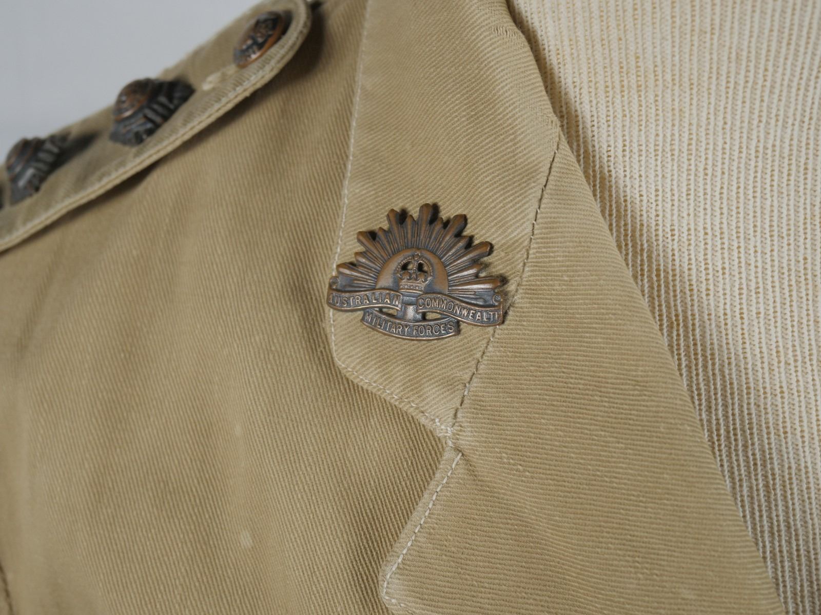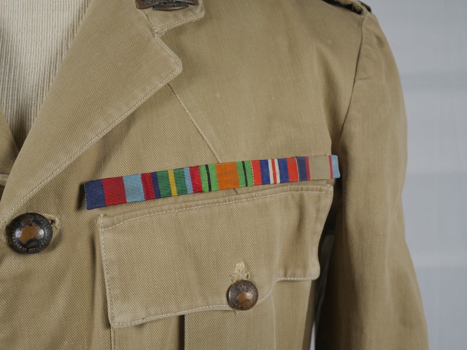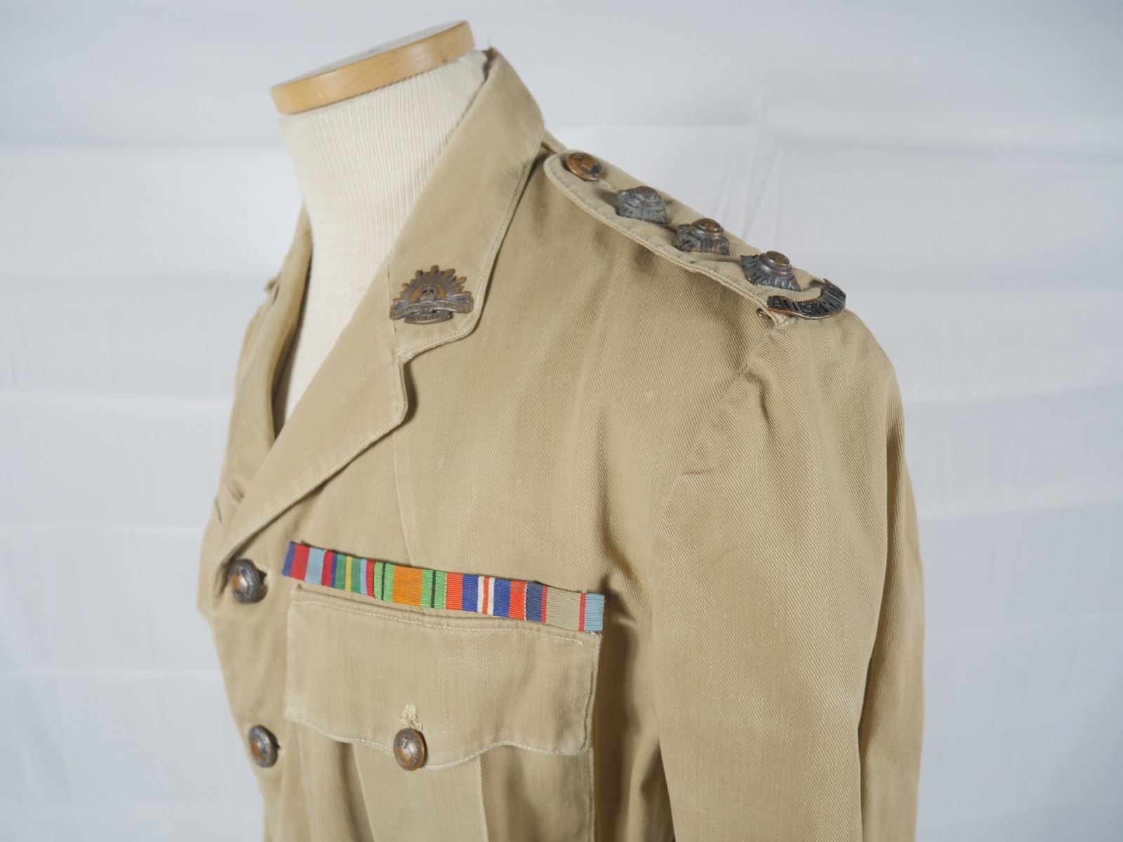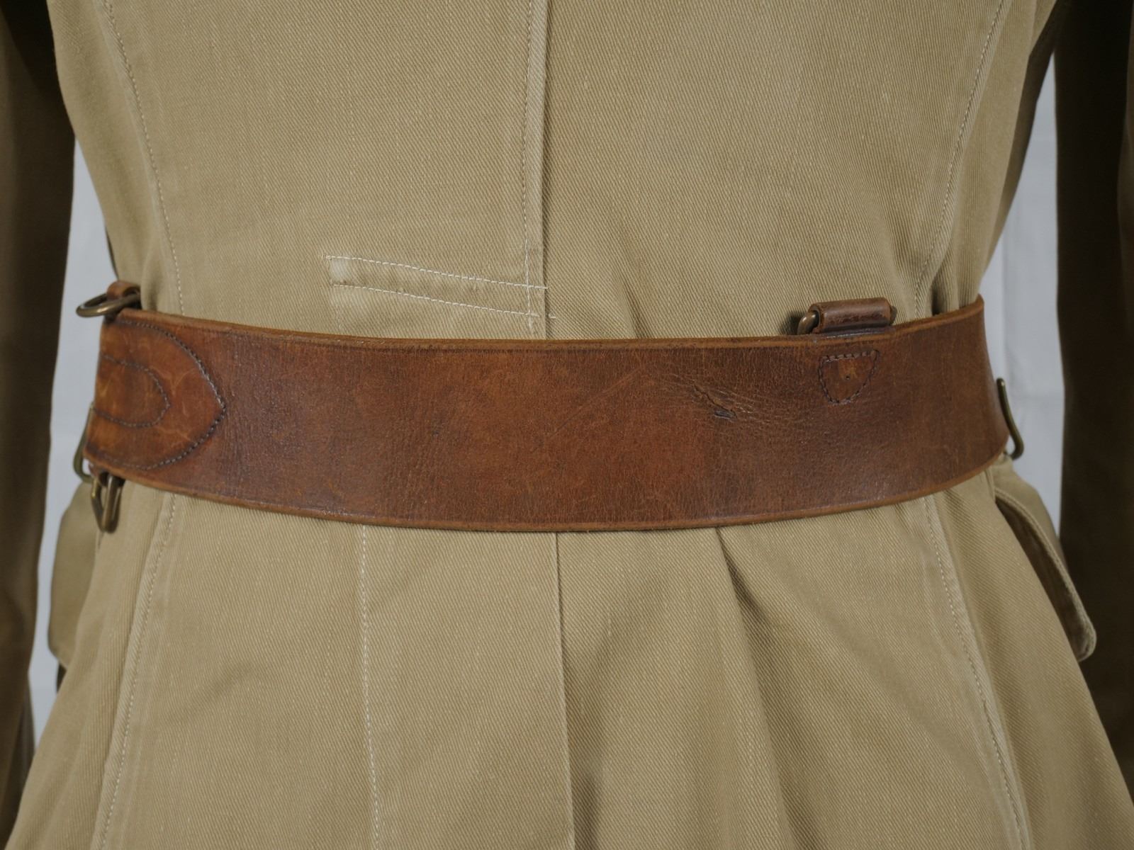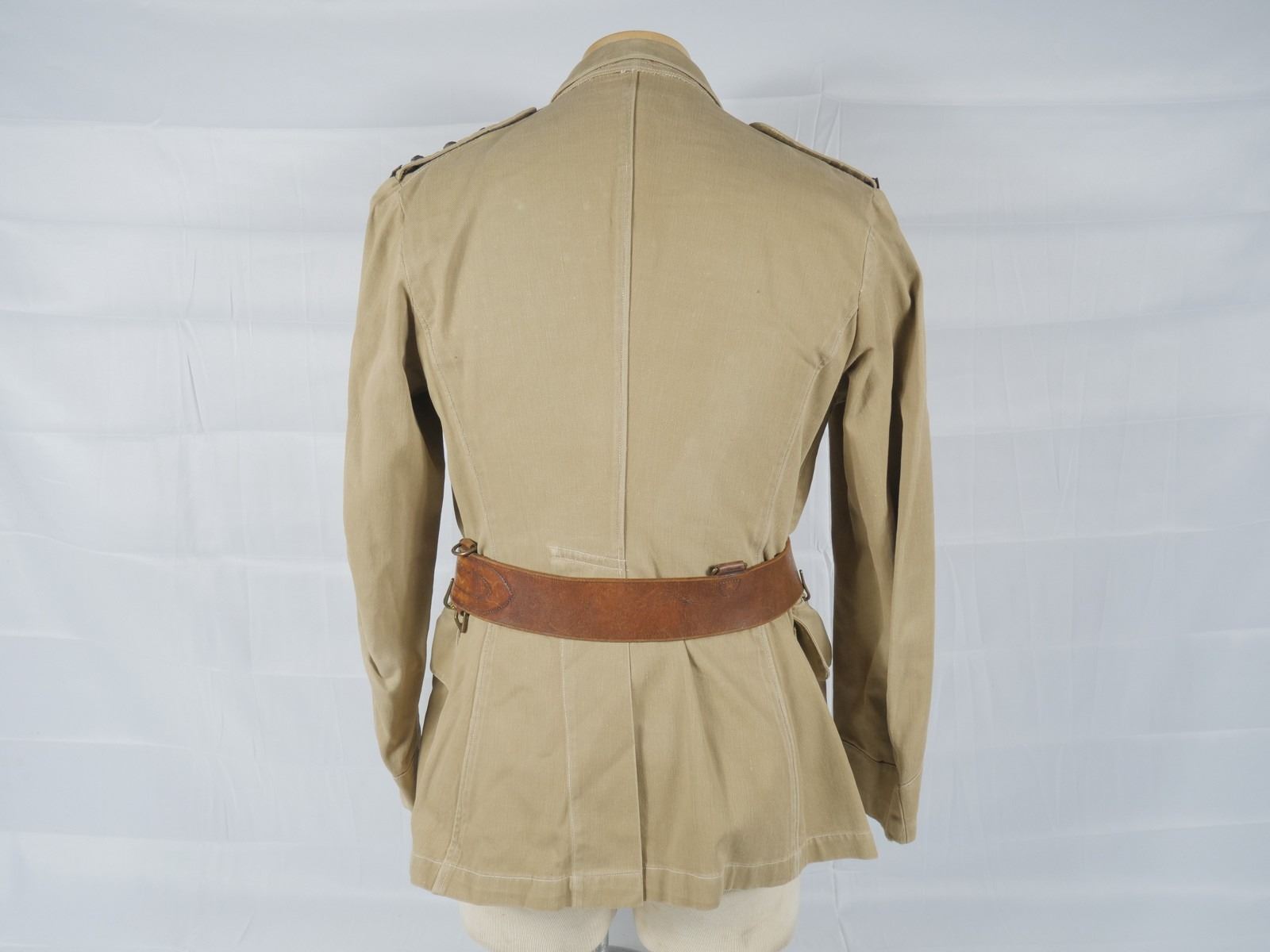 Belonged to Nerville D. Smith. Smith enlisted August 9, 1940 and achieved the rank of Captain by the end of the war. Very minor wear on the cuffs. Good condition. With insignias. Leather belt in good condition.