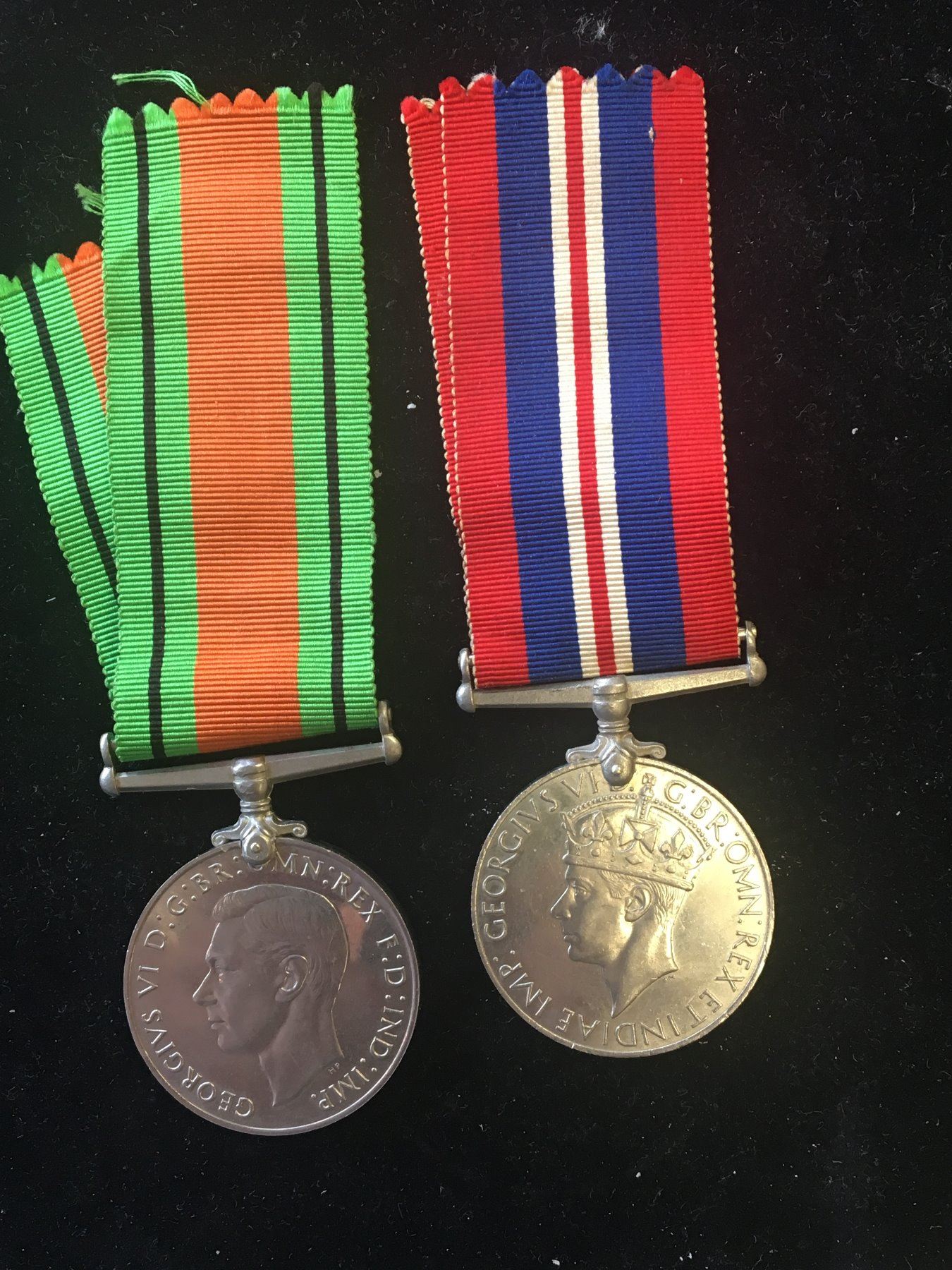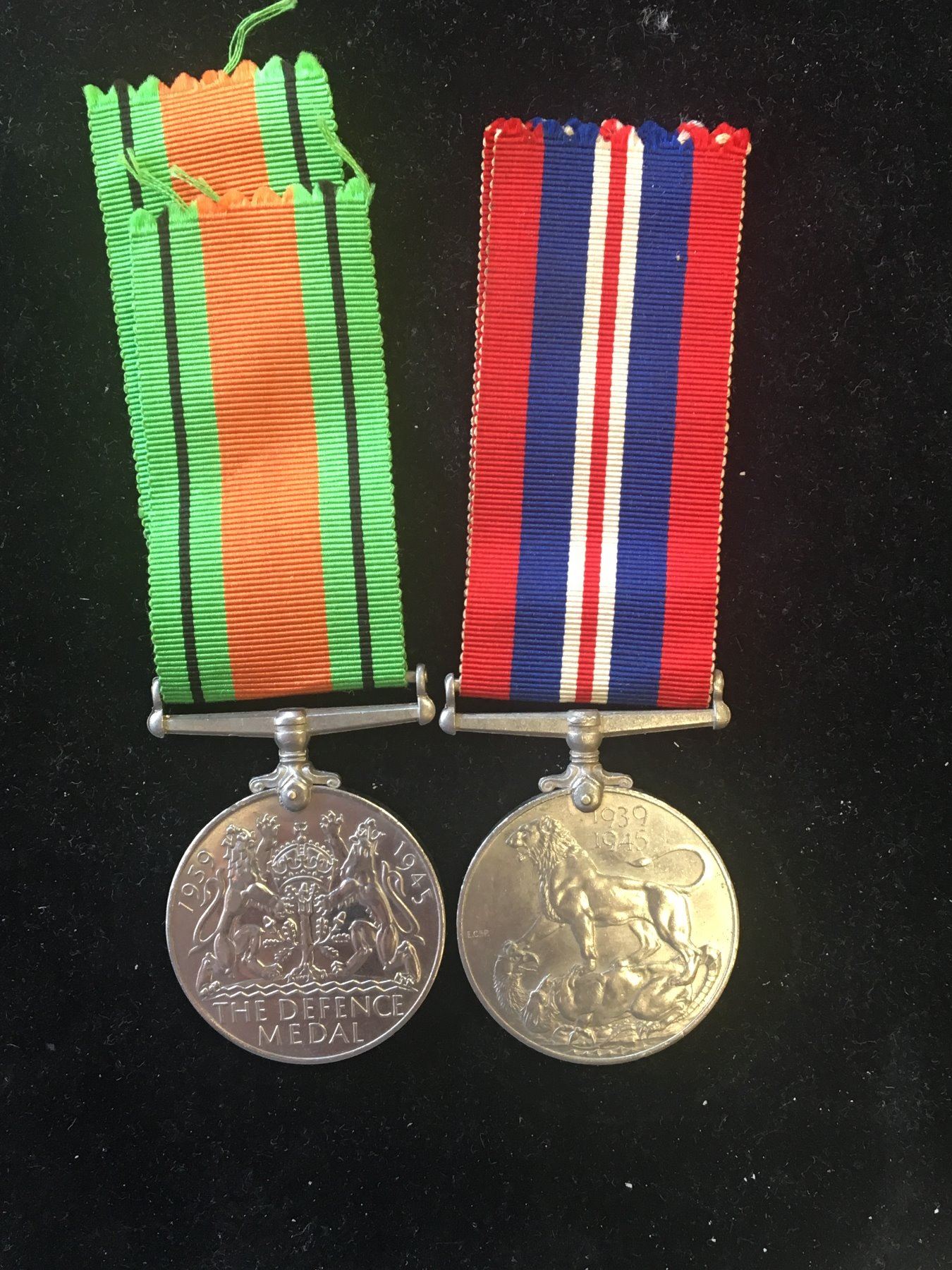 LOT OF 2 BRITISH ISSUE WWII MEDALS WITH RIBBONS.DEFENCE MEDAL AND WAR MEDAL 1939-1945
