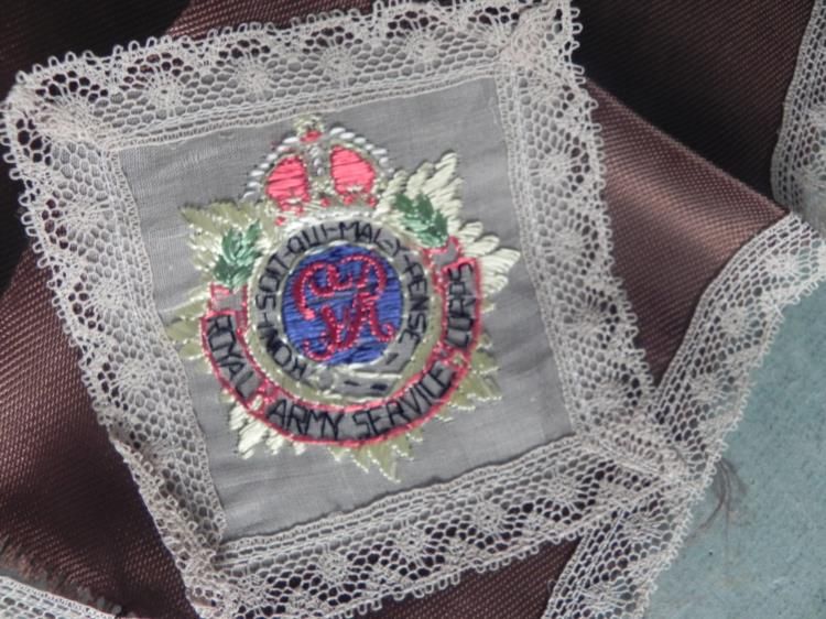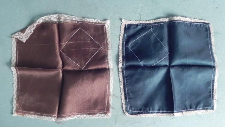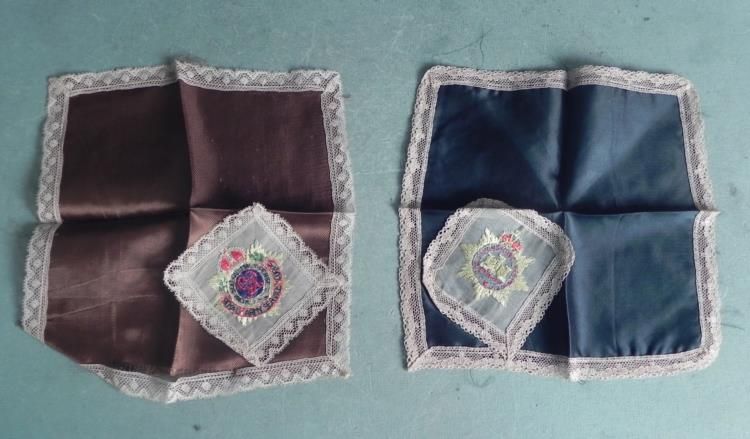 WWII BRITISH ROYAL ARMY LACE TRIMMED HANKIES-EMBROIDERED-2 ENGINEERS/SERVICE CORPS 9" SQUARE -SLIGHT SEPERATION TO LACE ON ONE