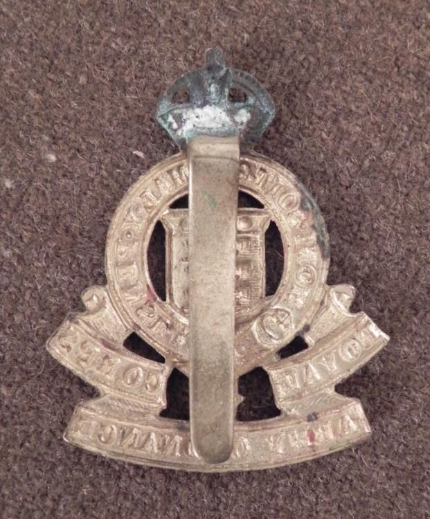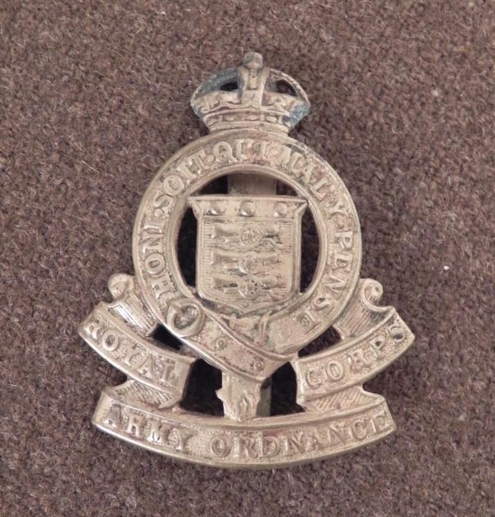 WWII BRITISH ROYAL CORPS ARMY ORDNANCE REGIMENTAL CAP BADGE-SLIDER BACKROYAL CROWN ON TOP
