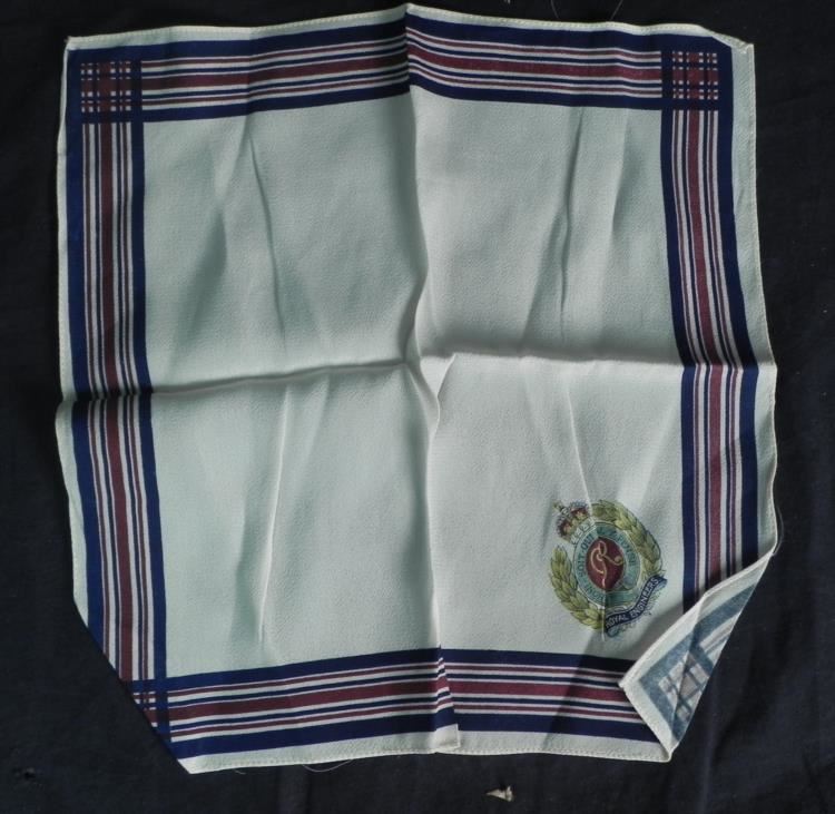 WWII BRITISH ROYAL ENGINEERS SWEETHEART HANKIE-RAYON-12" SQ-WITH ROYAL CREST EX COND