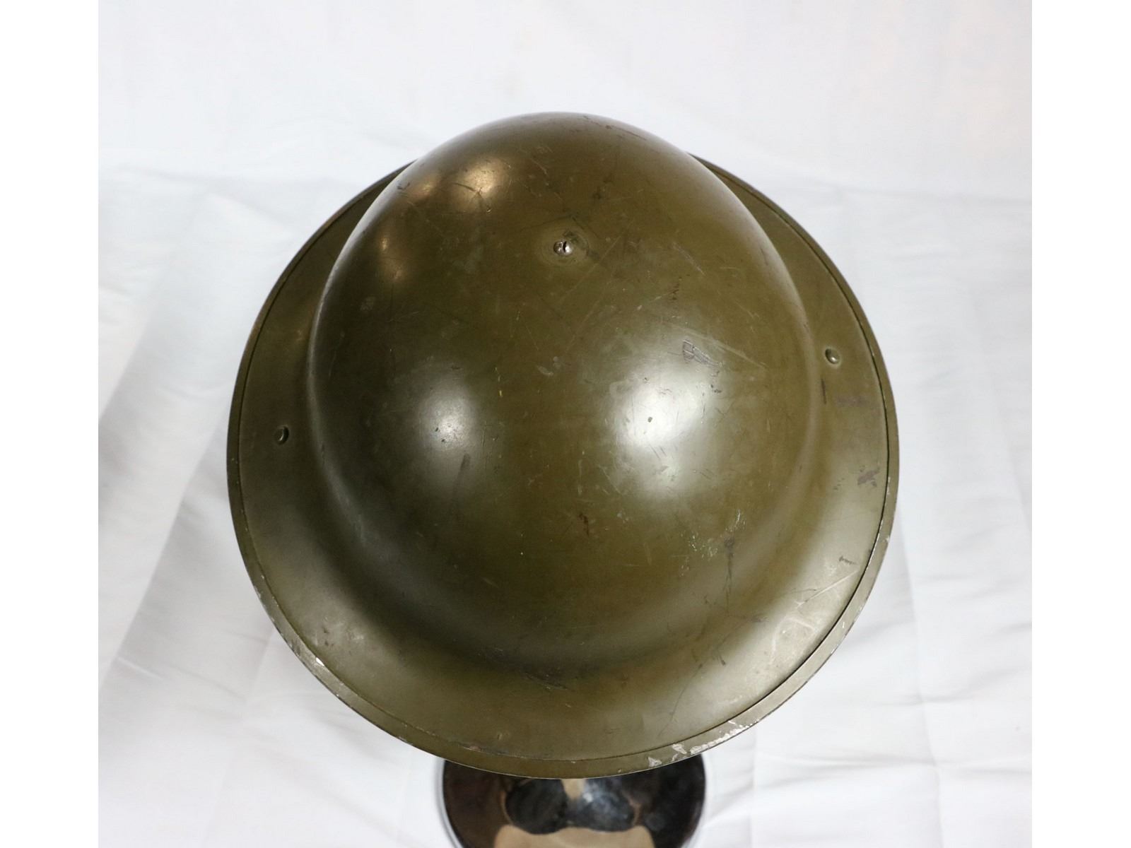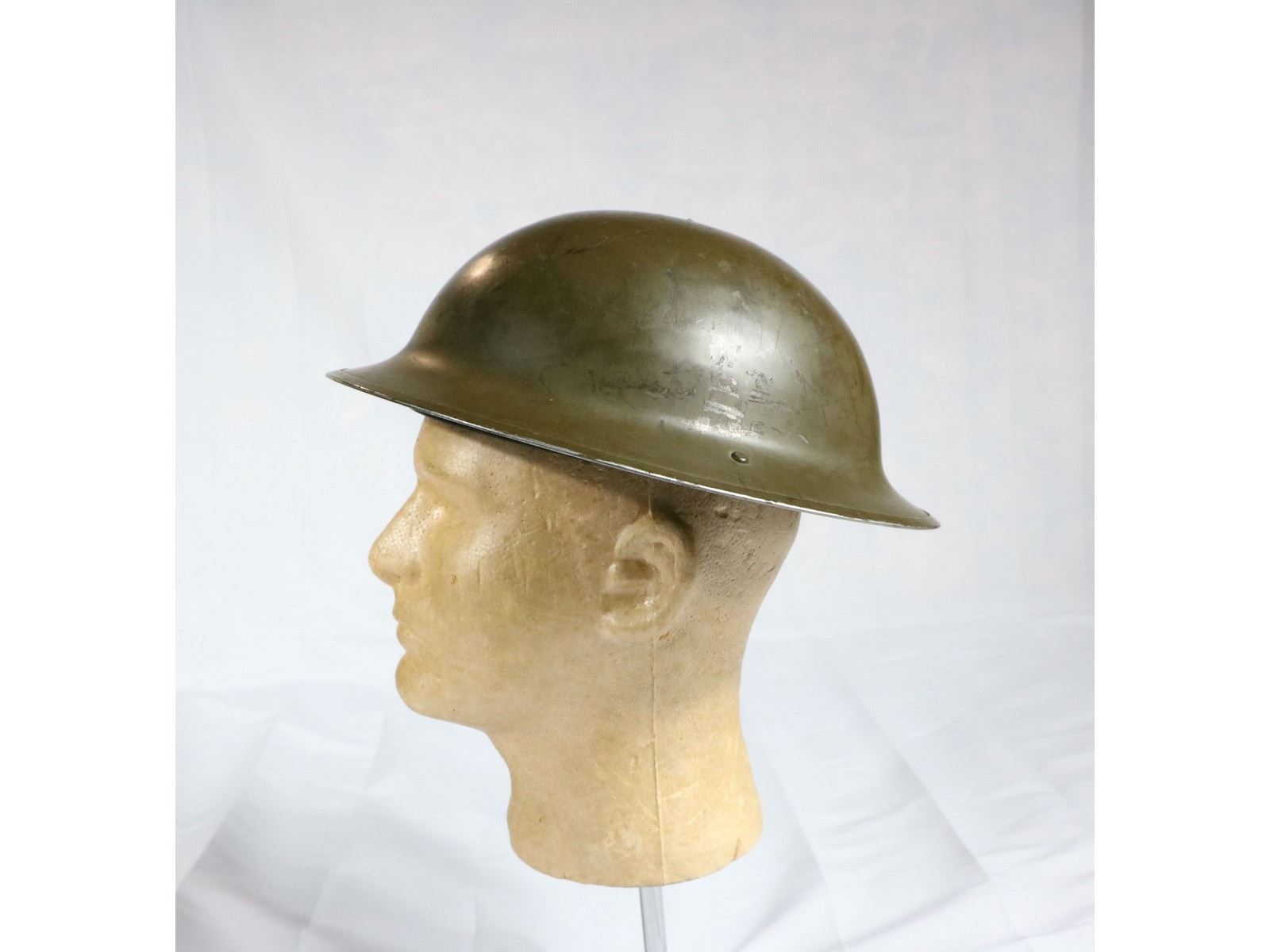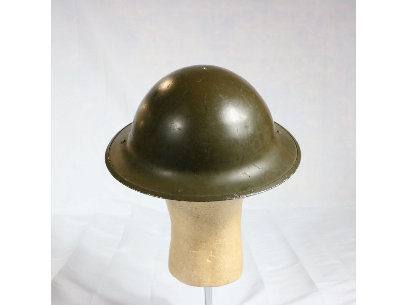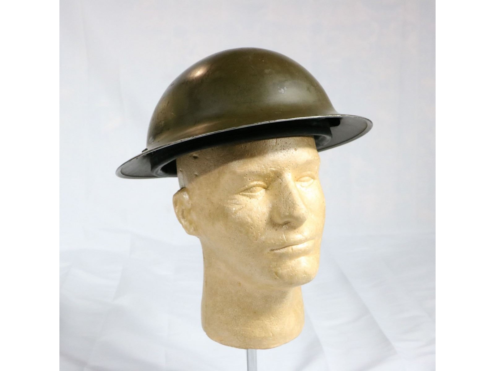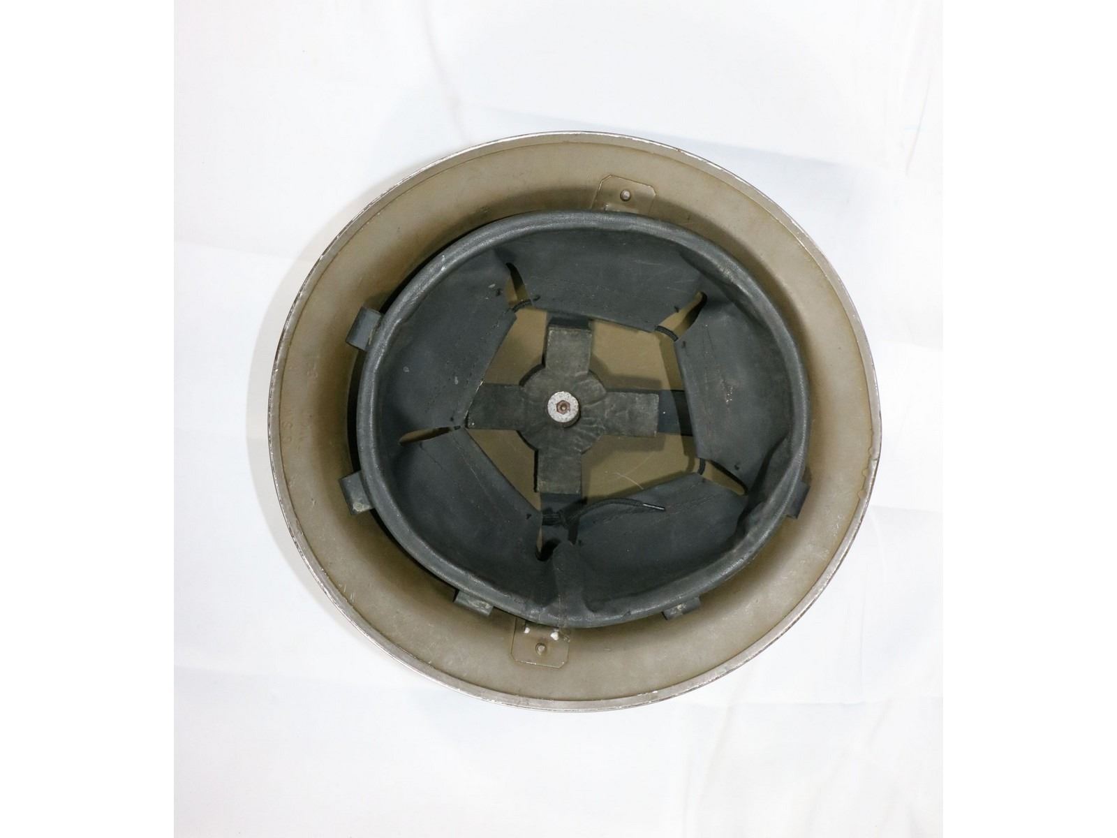 British style helmet with black rubberized liner. No chin strap.