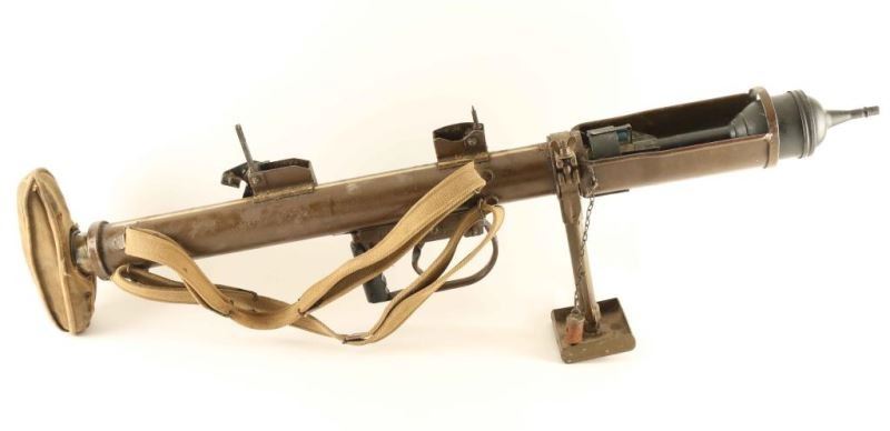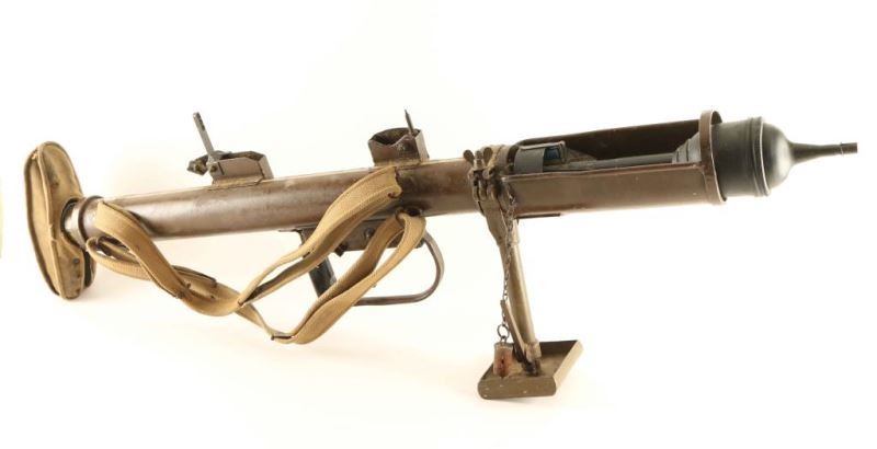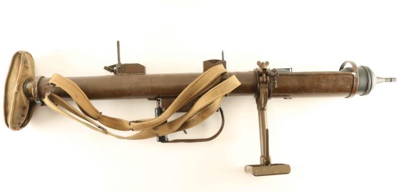 Complete with slings and canvas recoil pad, SN IRA50374 all matching on sights and tube. Comes with inert drill round. Removed from the NFA. non-firearm From The John F Sukey Collection