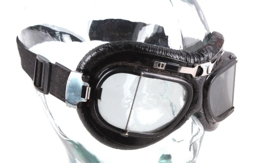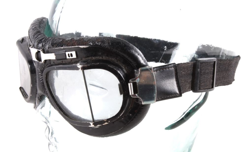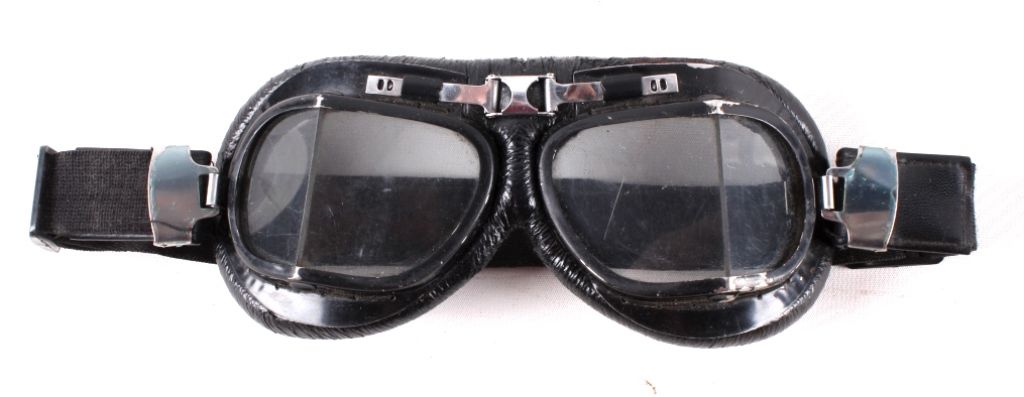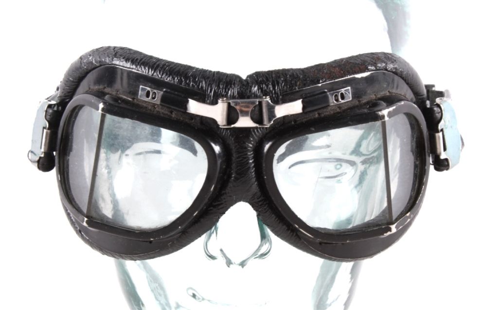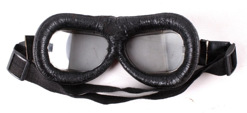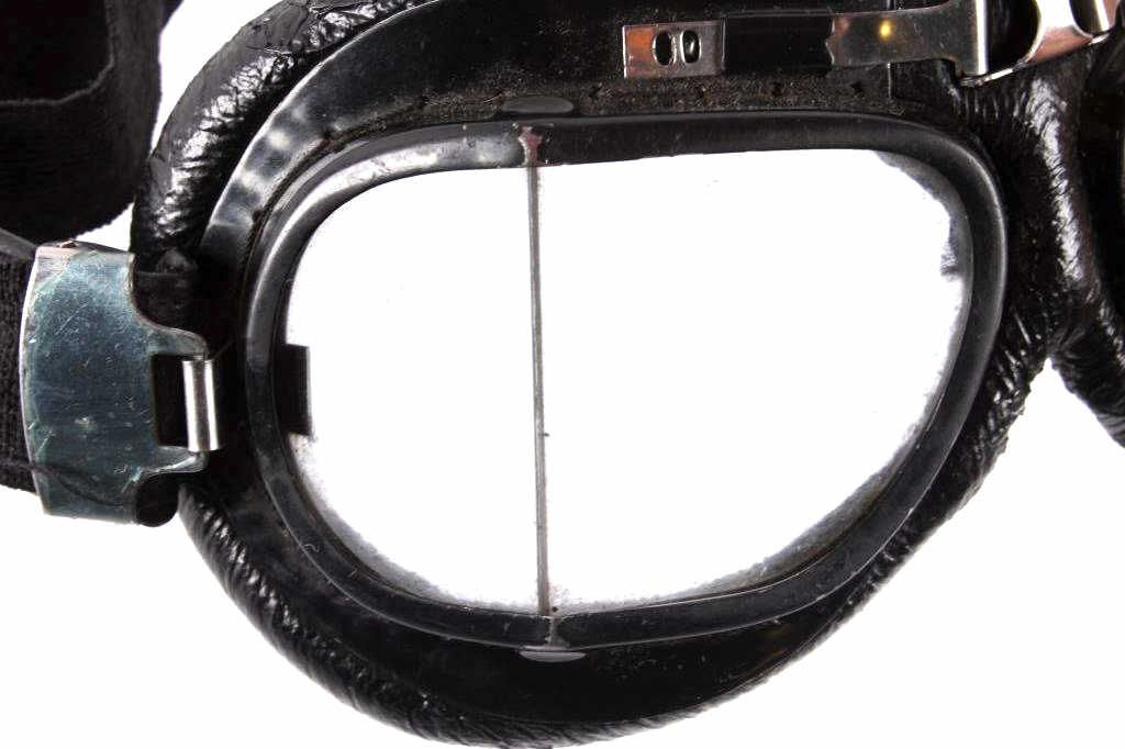 These are original World War two British  Royal Air Force Mark 8 (MK VIII) flight pilot  goggles. The goggles show two part lens and  a black leather cushion. The glasses or  goggles are very rare and in very good condition.