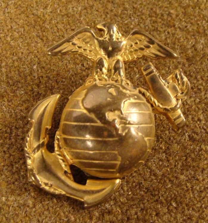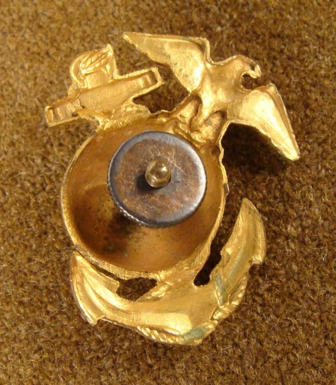WWII CAMPAIGN HAT MARINE INSIGNIA--SCREW BACK-1 3/4" * * BRASS *
