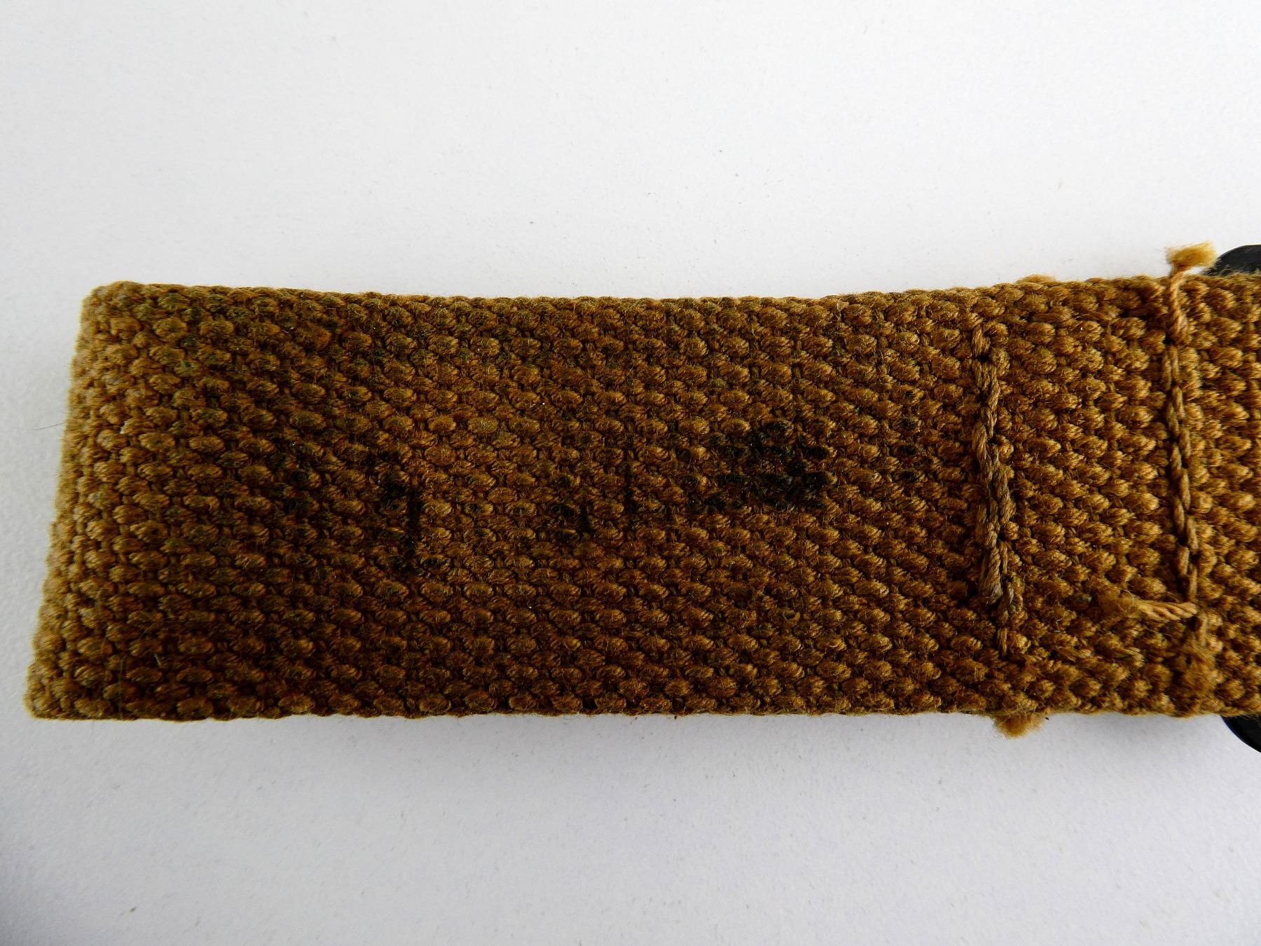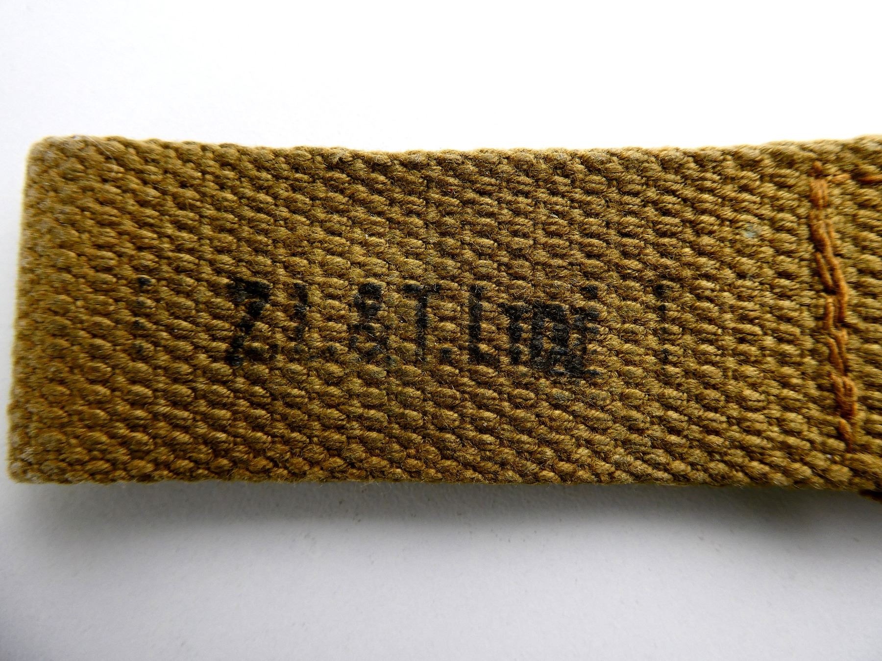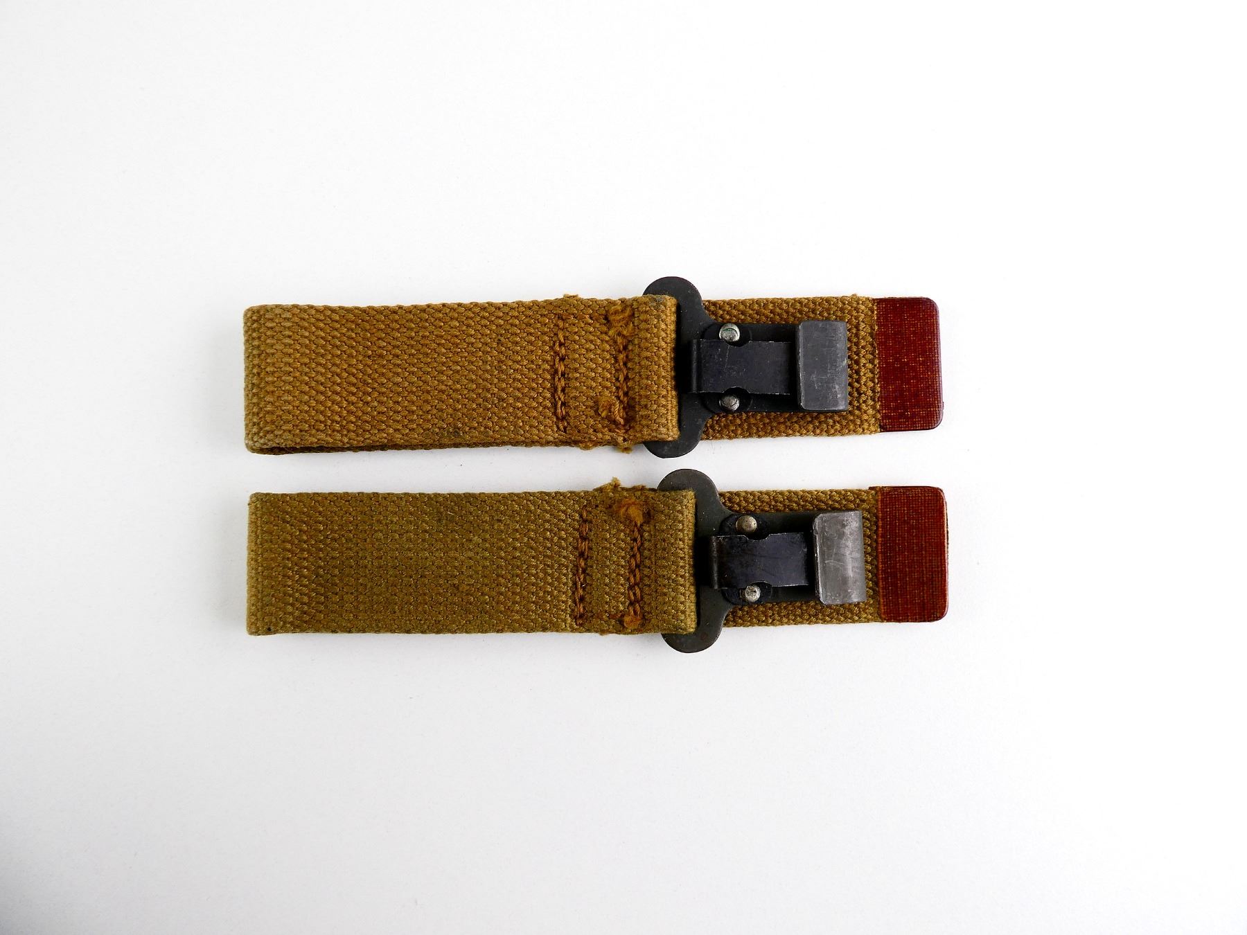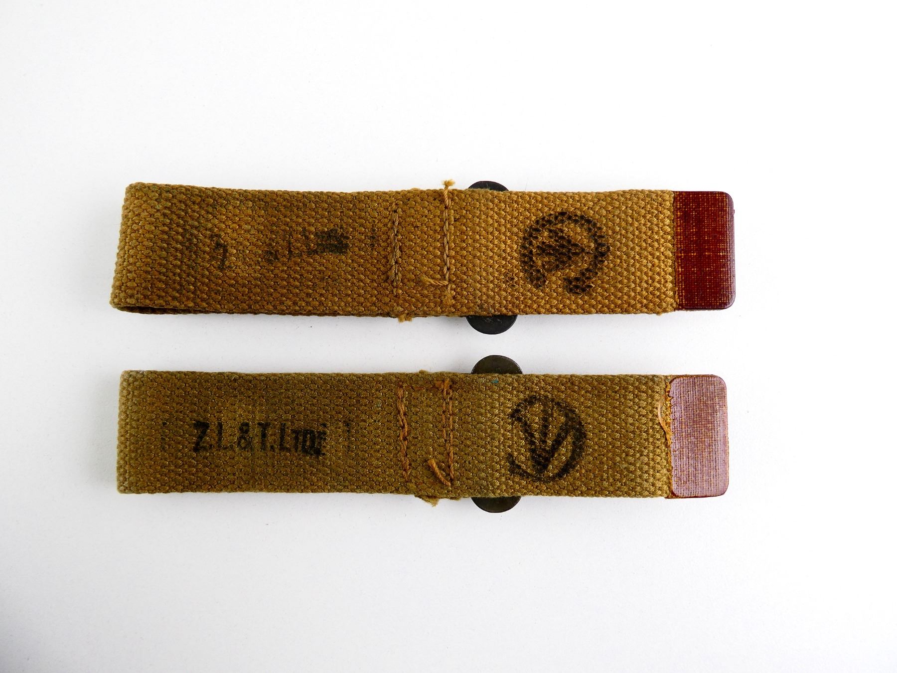 LOT INCLUDES; (2) P37 TAN WEB WITH METAL CLIP, MARKED: "Z.L.&T.LTD. (ZEPHA LOOM & TEXTILES)" & C-BROAD ARROW (ONE IS EARLY VERSION), OALS APPROX. 6 3/8". SEE PHOTOS.