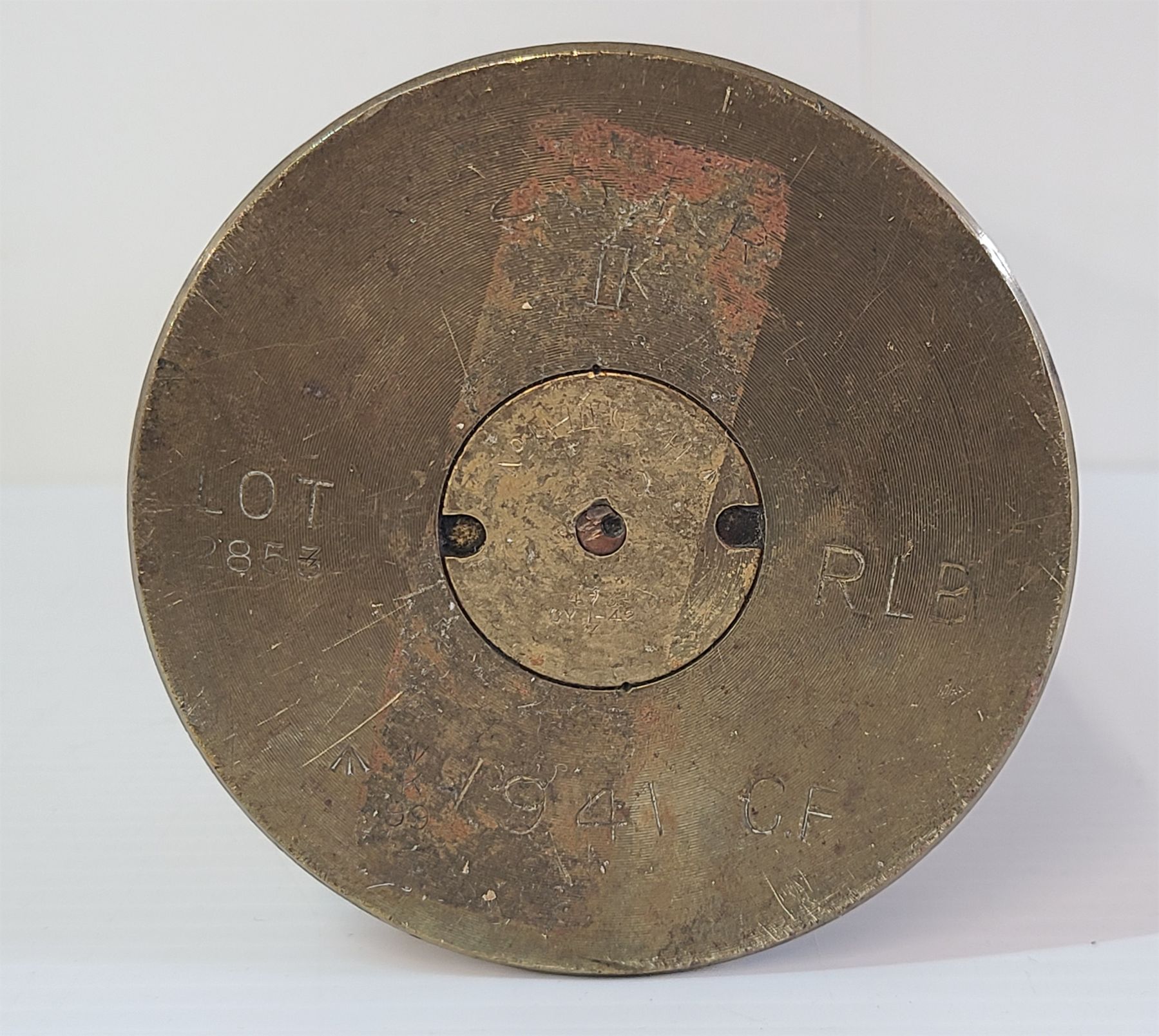 NOTE: 3.5 DIA 11.5IN TALL - MARKED LOT 2853 RLB 1941 C.F.