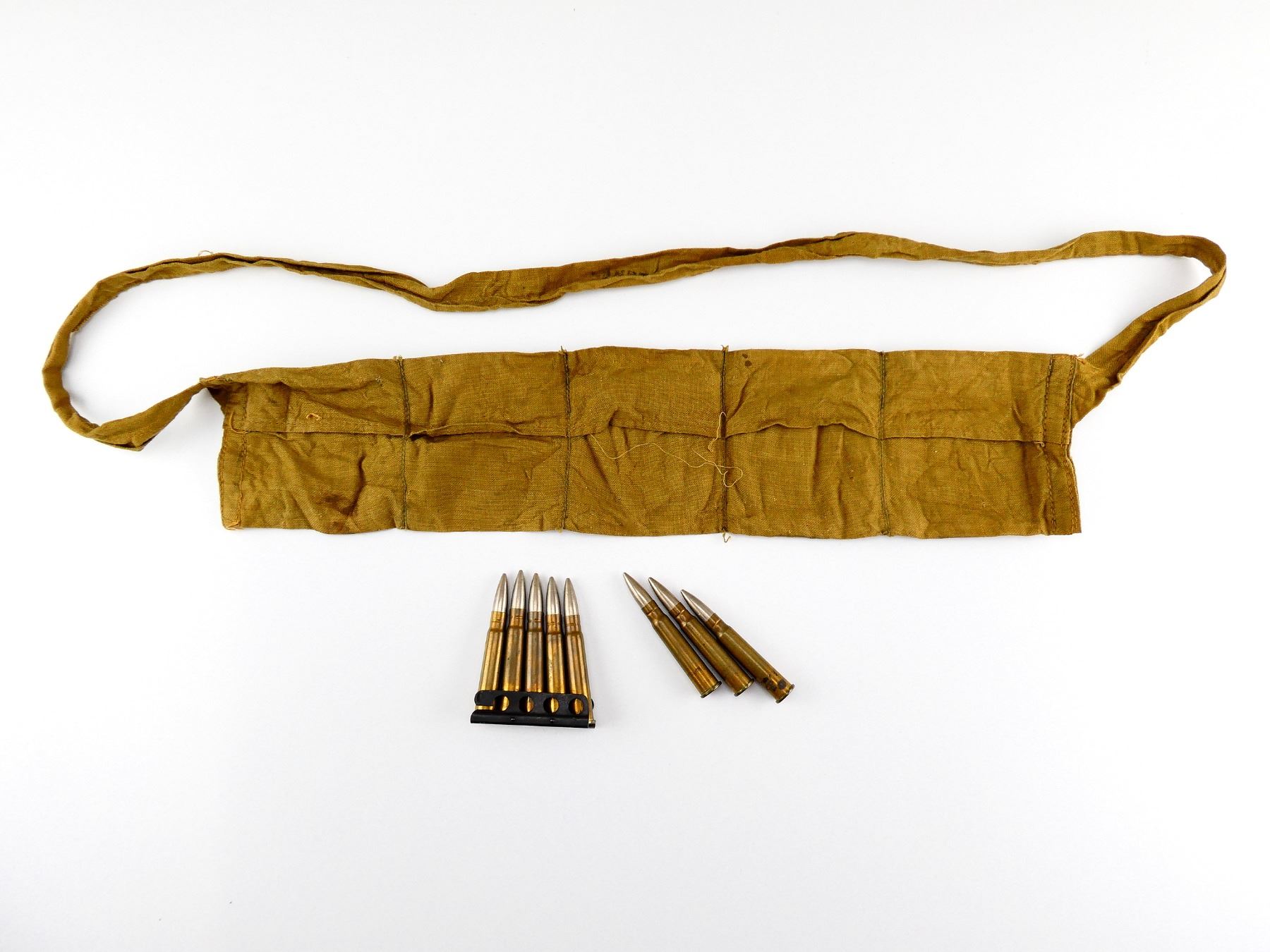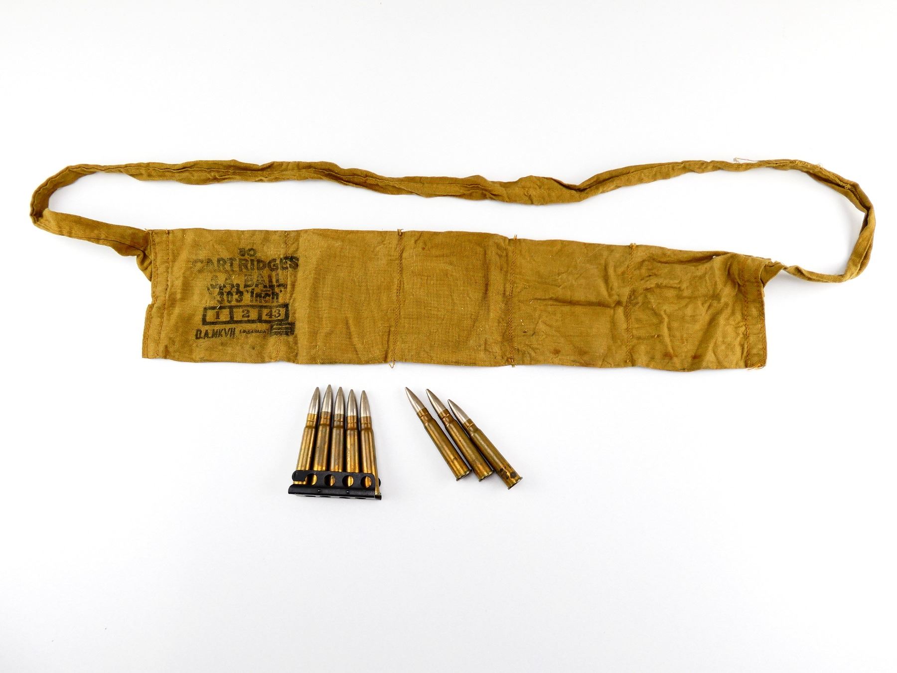 LOT INCLUDES; APPROX. (8) RNDS, FMJ, (1) STRIPPER CLIP, (1) BANDOLIER ,MARKED 1 2 43.
