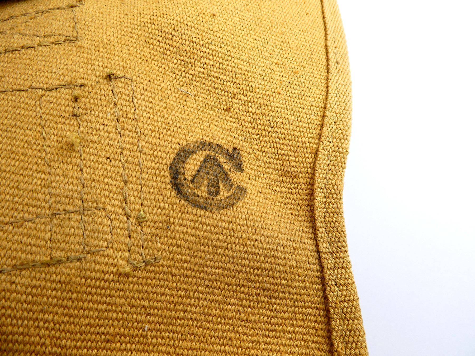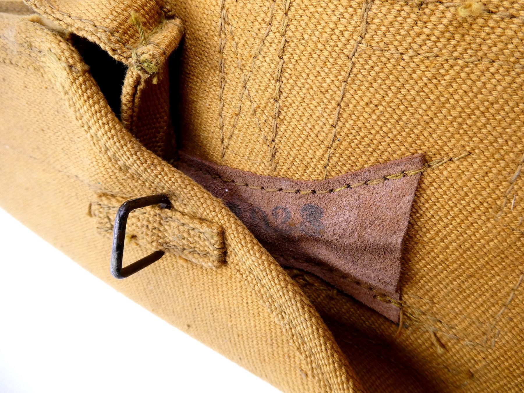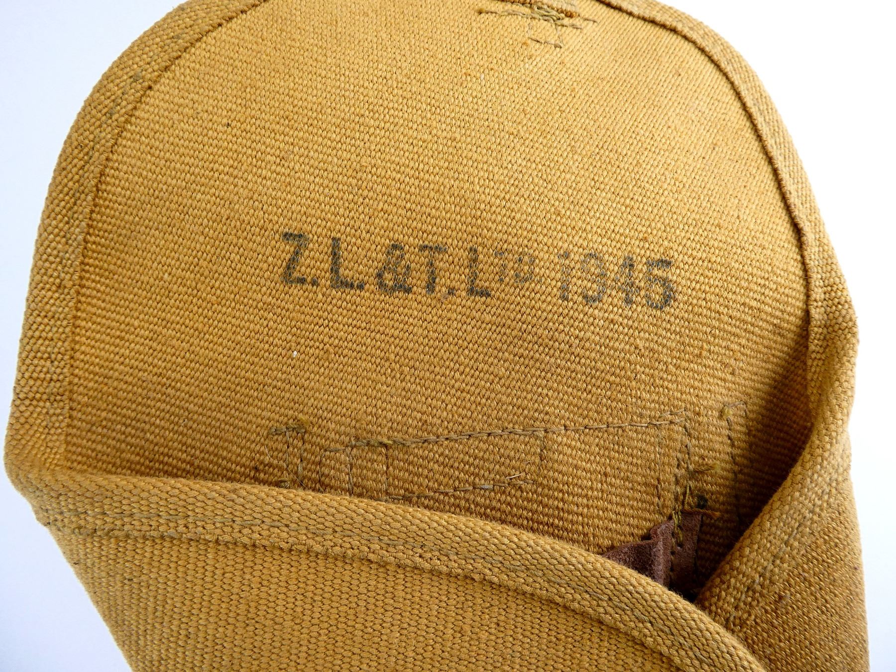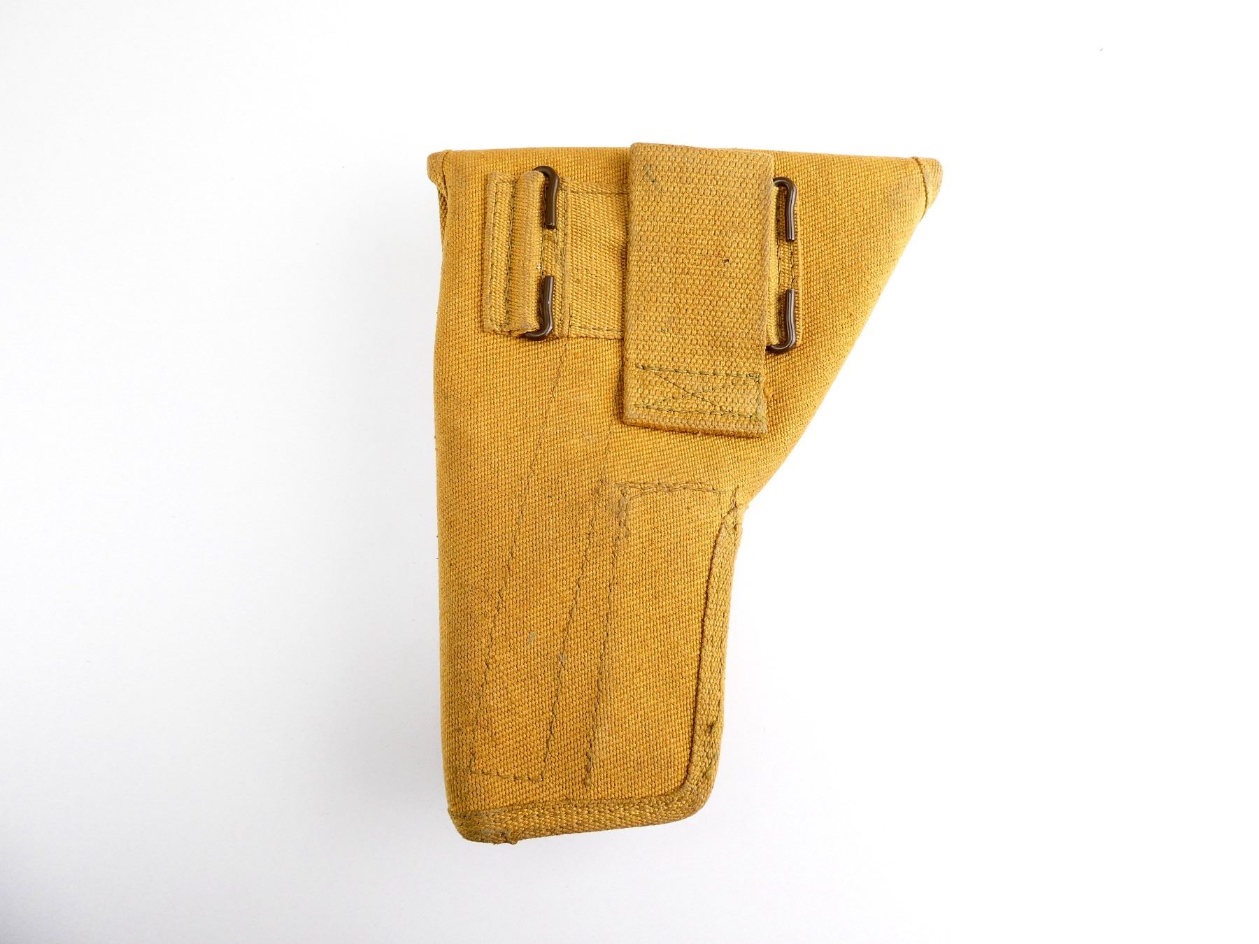 (1) FITS NO.2 MKI 9MM HIGH POWER PISTOLS, TAN P37 WEB CANVAS, MARKED: "Z.L.&T. LTD. 1945" WITH C-BROAD ARROW & "2033" BELT LOOP / HOOKS & STEEL LINED MAG SLEEVE. SEE PHOTOS