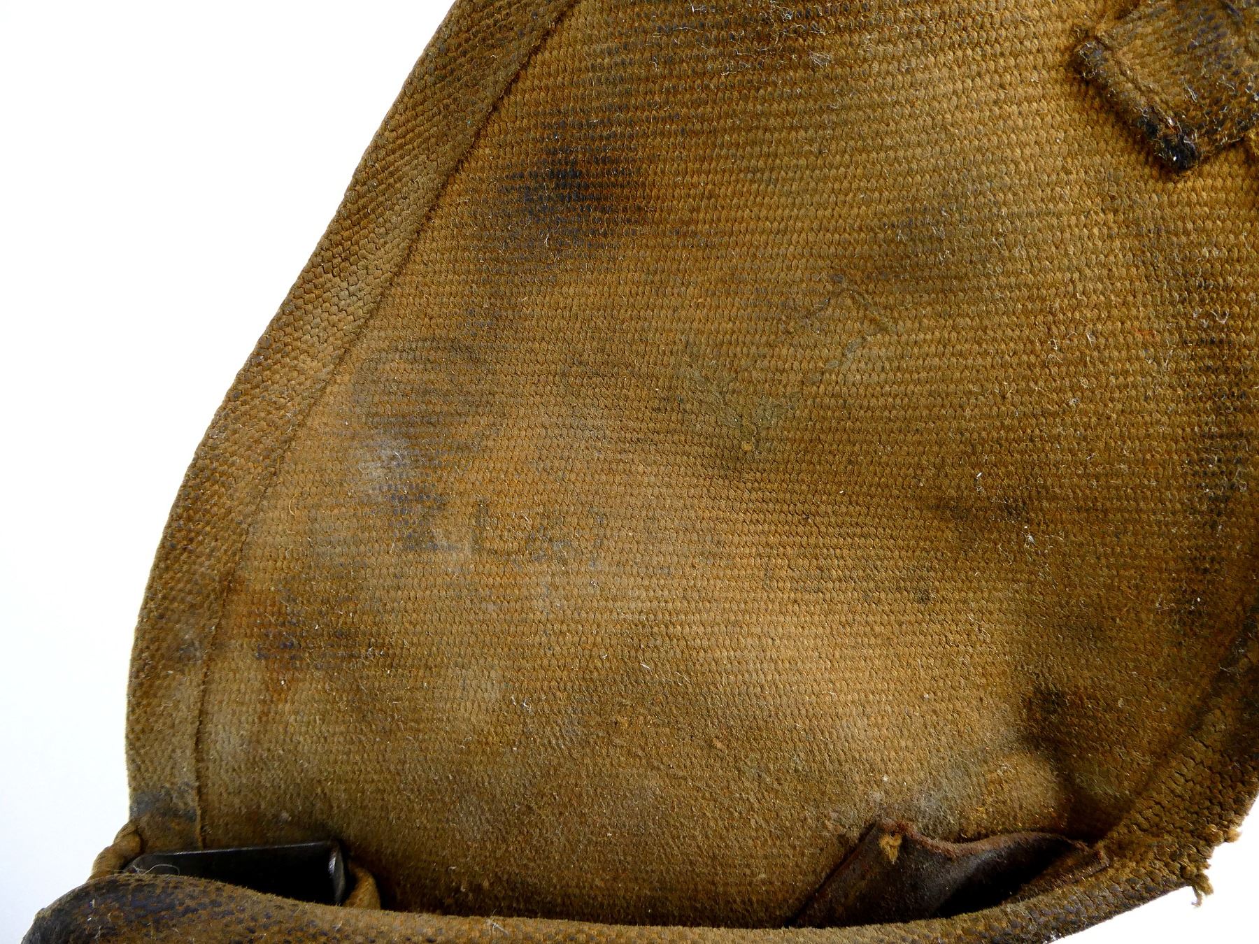 (1) TAN P37 WEB CANVAS HOLSTER, FITS INGLIS HIGH POWER PISTOL, FIRST PATTERN, CHINESE PATTERN, FAINTLY MARKED: "Z.L.&T.LTD. 1944" WITH C-BROAD ARROW, STEEL / BRASS FITTINGS, STEEL LINED MAG SLEEVE & CANVAS BELT LOOP. SEE PHOTOS.