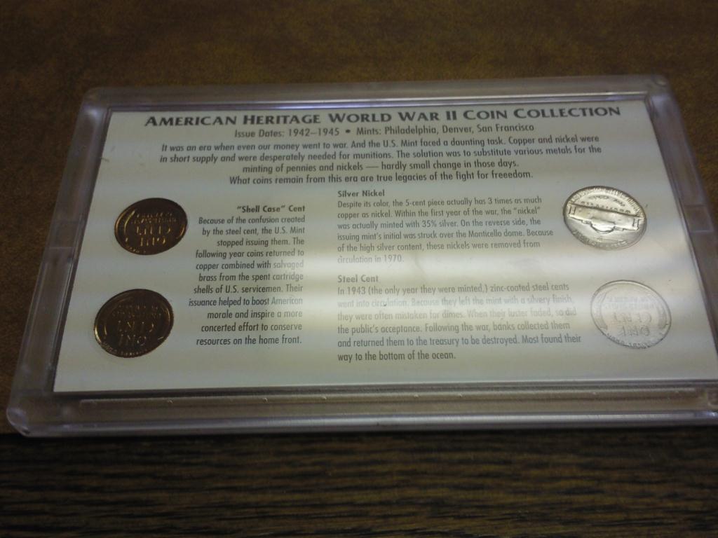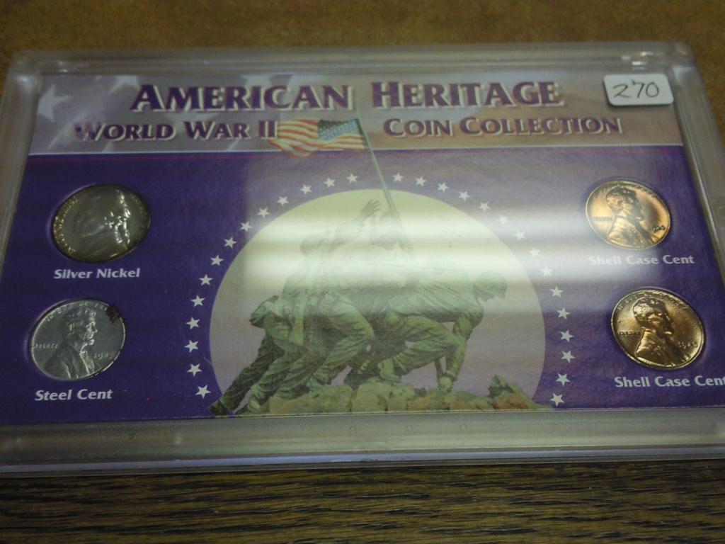 STEEL CENT, 2 SHELL CASE CENTS AND SILVER WAR NICKEL