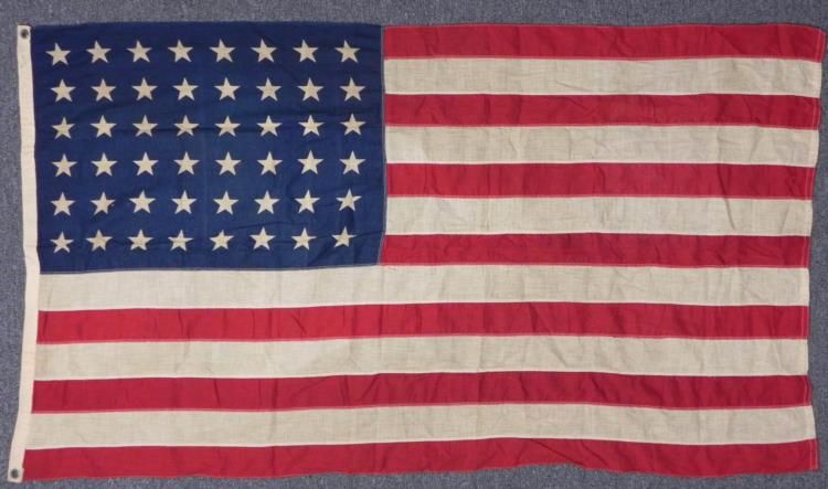 WWII ERA 48 STAR FLAG-3X5'-MULTI-PIECE CONSTRUCTION-W/CORNER GROMMETS * * * MULTI-PIECE--COTTON/LINEN MATERIAL