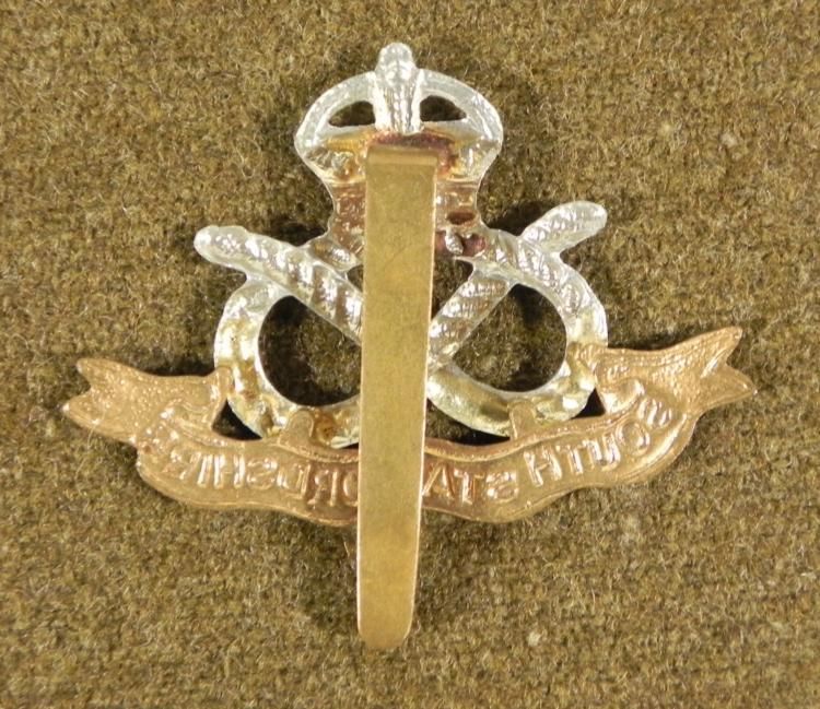 WWII ERA BRITISH "SOUTH STAFORDSHIRE" REGIMENTAL CAP BADGE * SILVER & GOLD TONE *