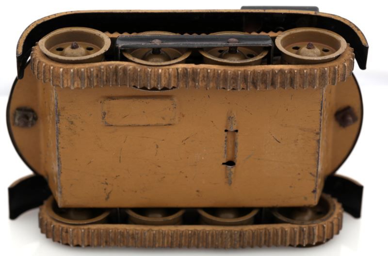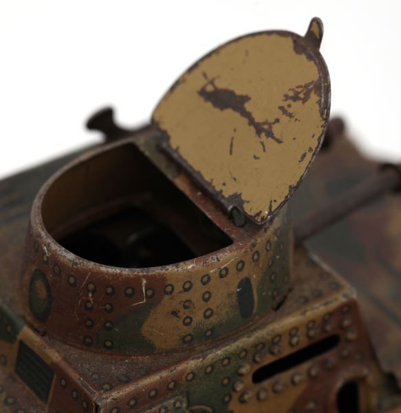 Tin tank toy is no longer in working condition and has had some repair work done to it. All original parts appear to be present. This lot has a reserve.