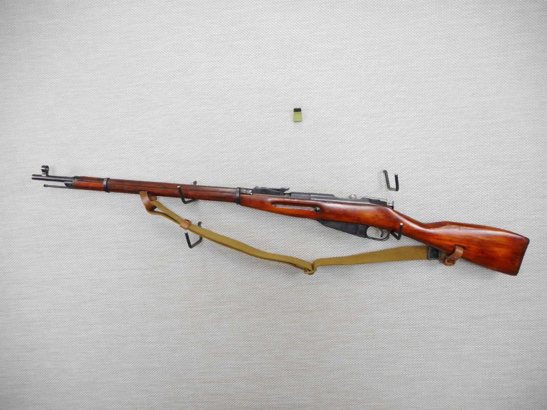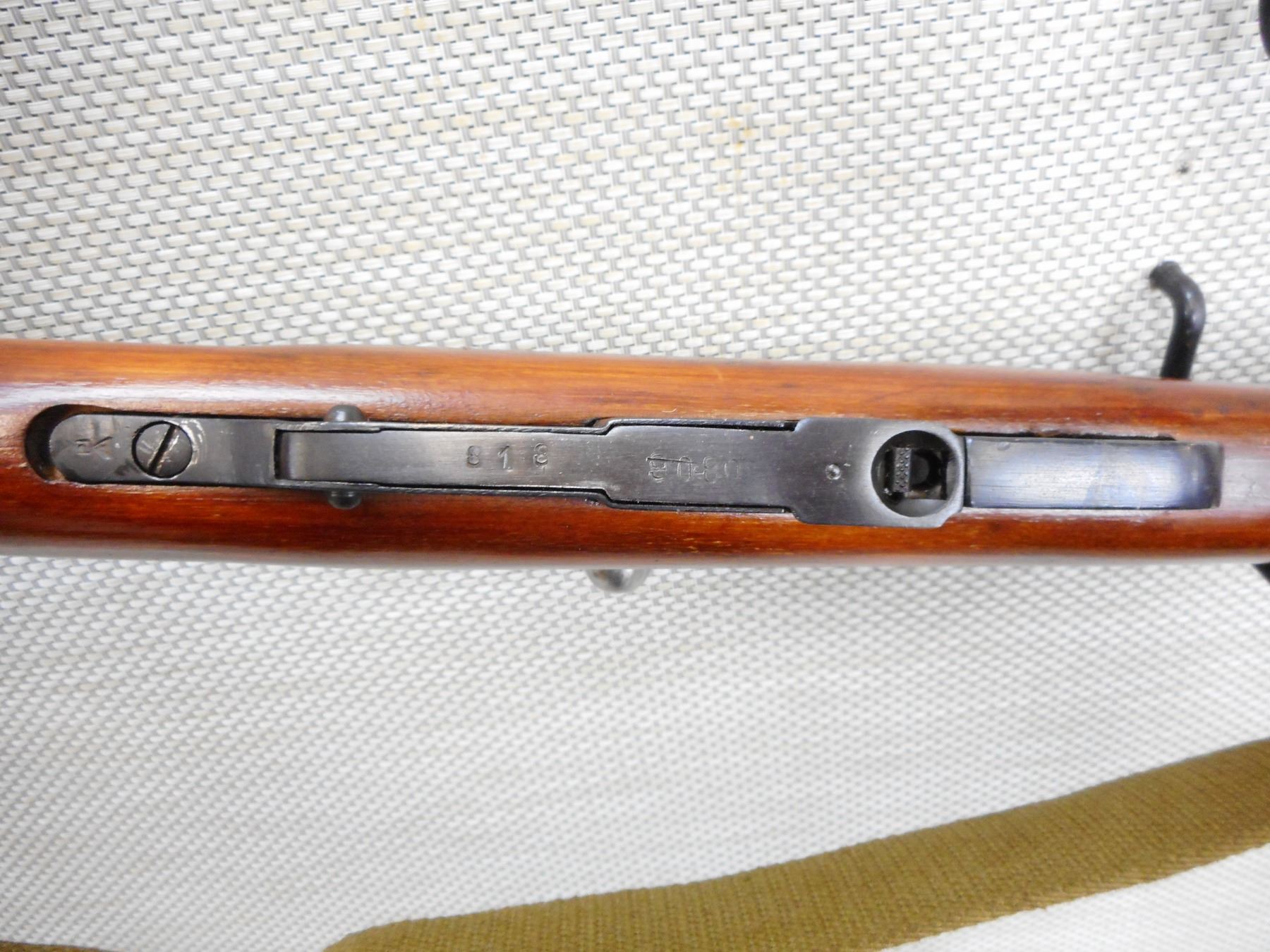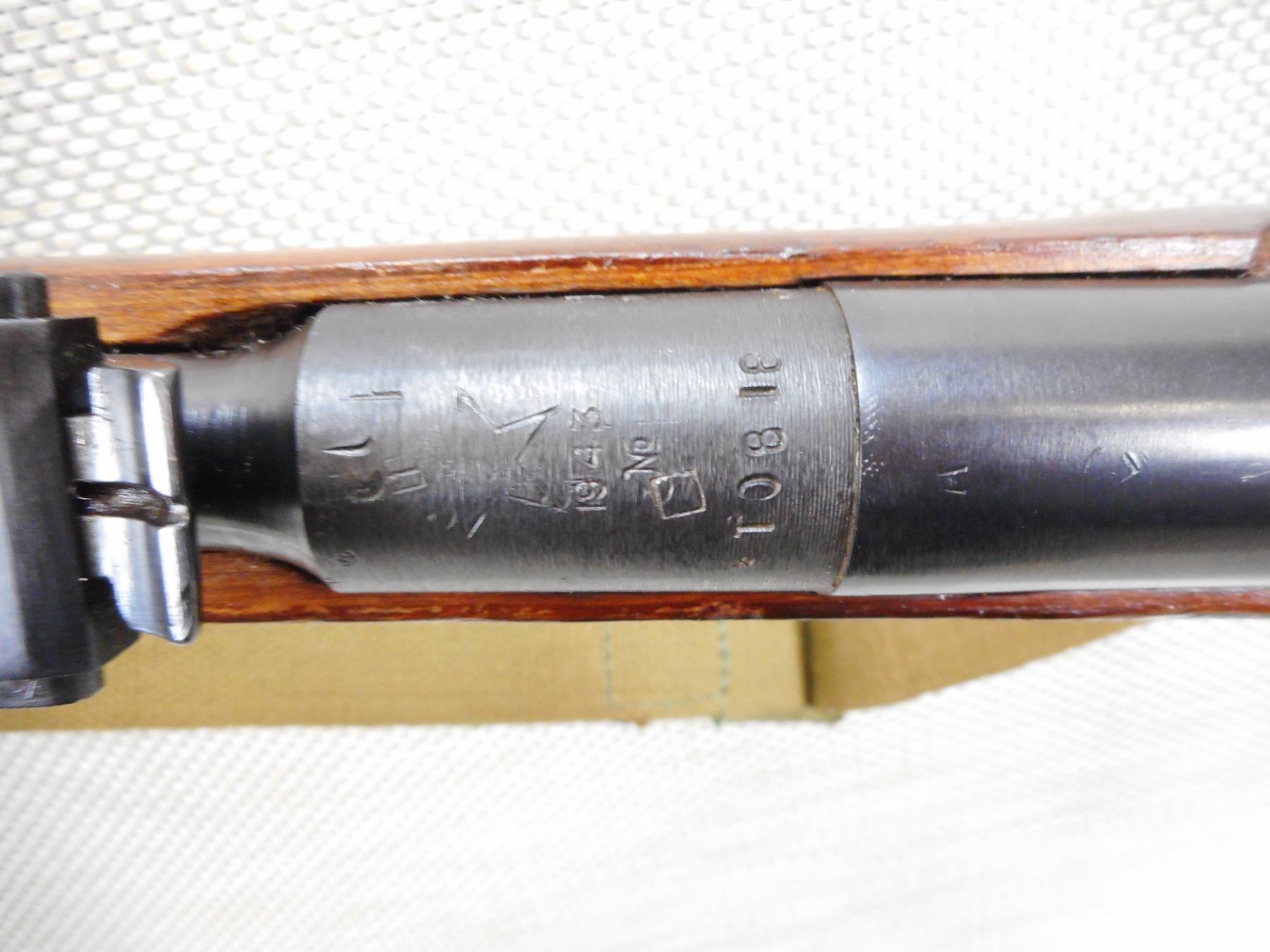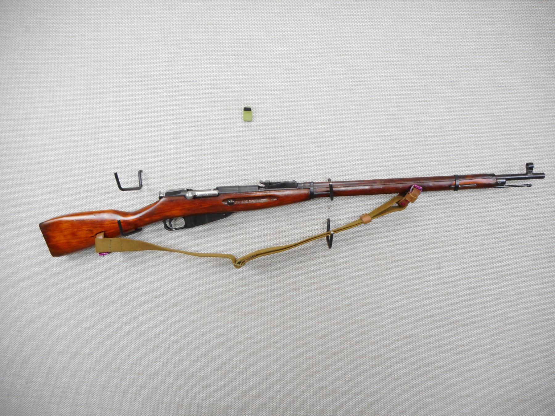WWII ERA, MOSIN NAGANT , MODEL: 91/30 , CALIBER: 7.62 X 54R , THIS IS AN EX SNIPER RIFLE WITH REPLACED BOLT, ON THE LEFT SIDE OF THE RECEIVER YOU CAN SEE IT WAS DRILLED FOR SCOPE MOUNTS WHICH ARE NOW PLUGGED, BOLT AND RECEIVER MATCH BY SERIAL #, DATED 1943, TULA ARSENAL, BORE IS GOOD, HOODED FRONT AND ADJUSTABLE REAR SIGHT, ORIGINAL MILITARY LEATHER AND CANVAS SLING, RETAINS FULL MILITARY CONFIGURATION, STEEL BUTT PLATE, ARESNAL REPAIRED WOOD ON THE FOREND, HAS ORIGINAL CLEANING ROD, SHOWS SOME HANDLING MARKS , STOCK # 10196 , SERIAL # T0618 , ACTION: BOLT ACTION RIFLE , BARREL LENGTH: 29" , CONDITION: 6/10 , CLASS: CLASS: CANADIAN NON RESTRICTED CLASS