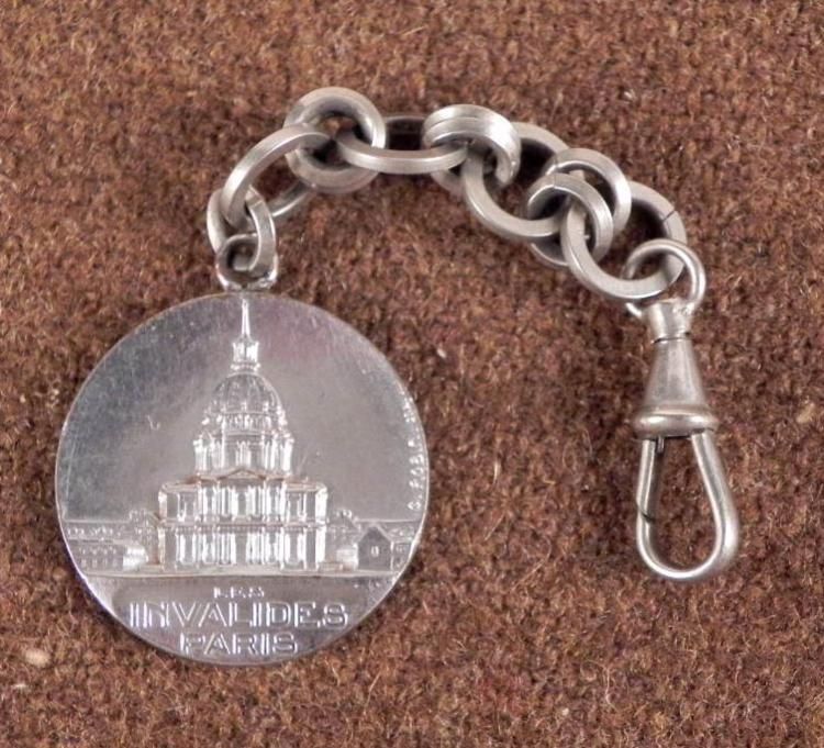 WWII ERA PARIS-LES INVALIDES WATCH CHAIN &FOB W/ CLIP-G. ROBIM"ARTIST MARKED1"" MEDALLION"#