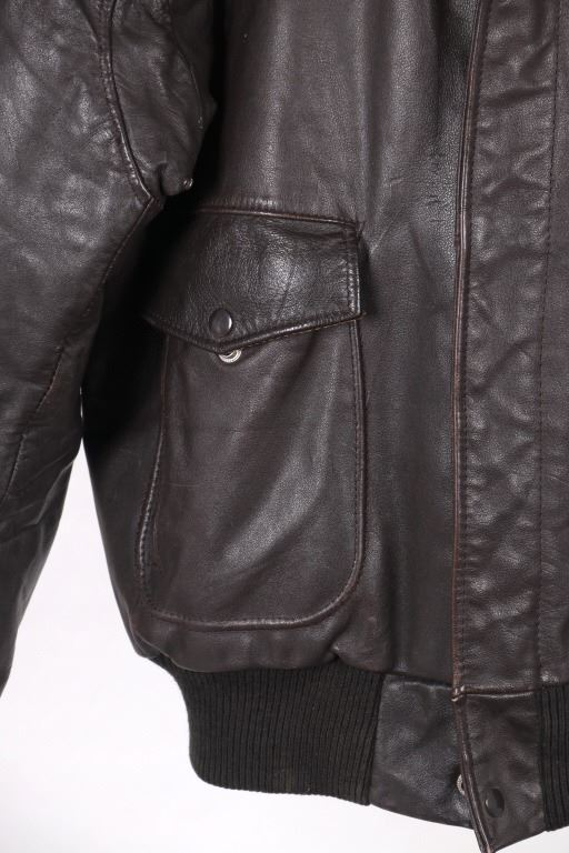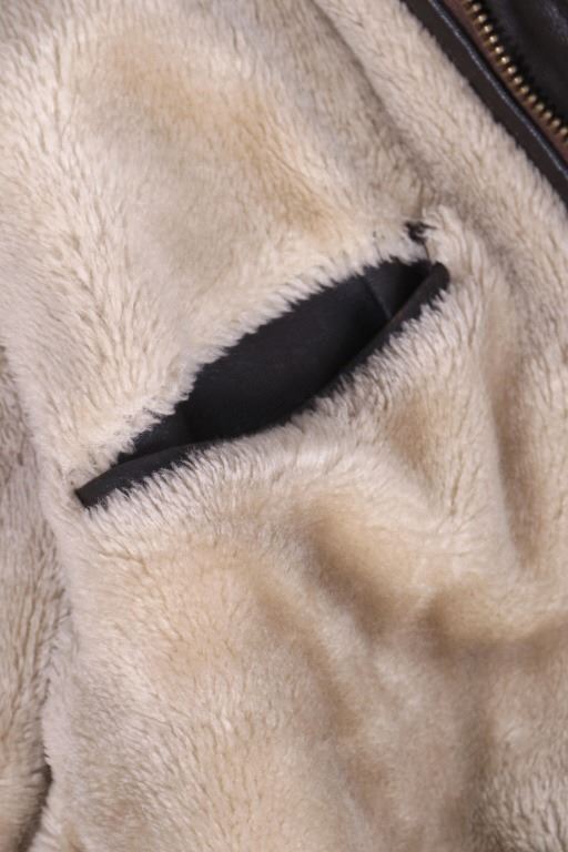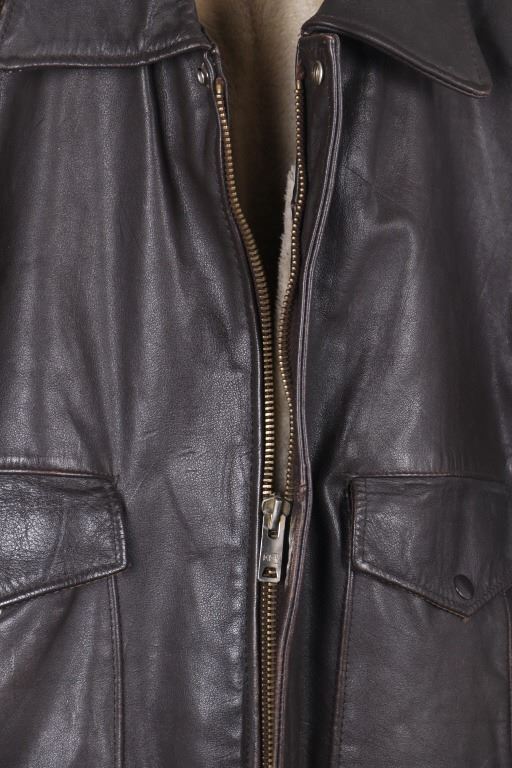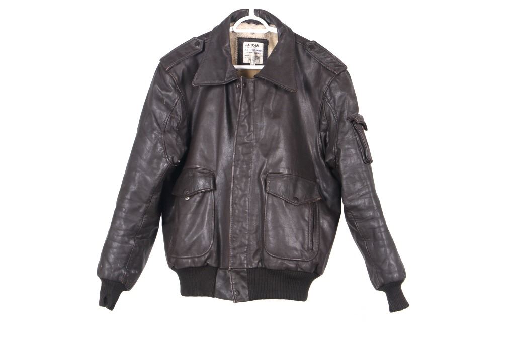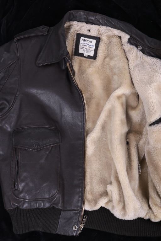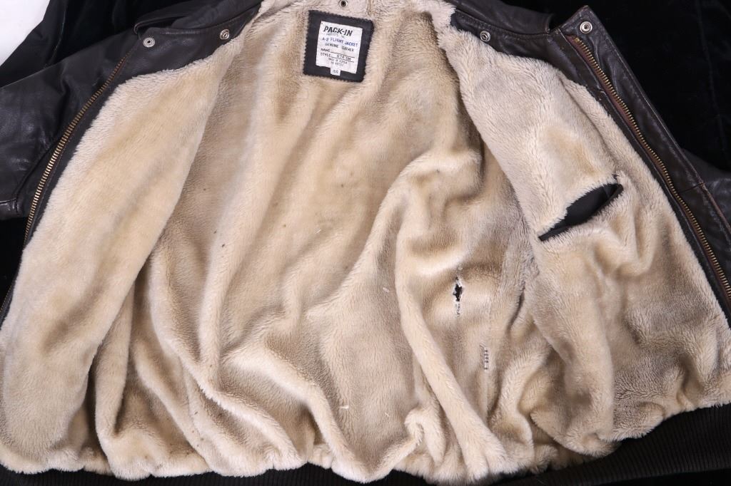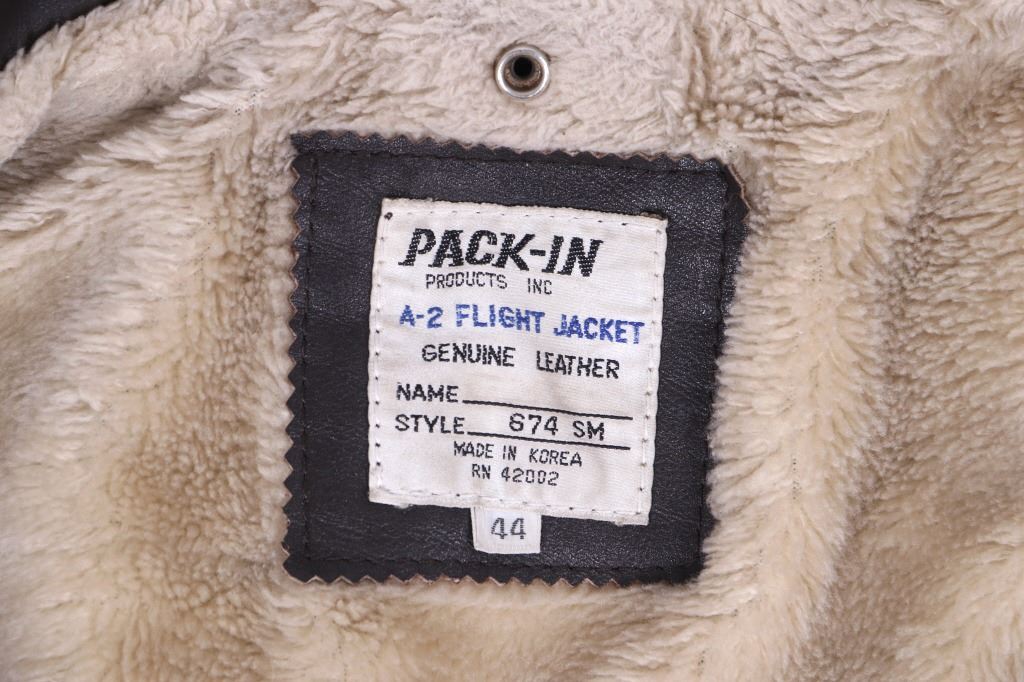 For your consideration is this A-2 genuine leather Pack In flight jacket made in Korea and from WWII era. This is a good well constructed flight jacket with multiple pockets and a sturdy main zipper with fleece lined genuine leather. The condition of this flight jacket is good with no obvious signs of damage to the jacket, there are some wear to the sleeves and some age marks of the leather jacket. The measurements of this jacket is 30" x 43".
