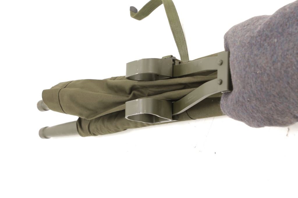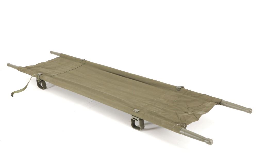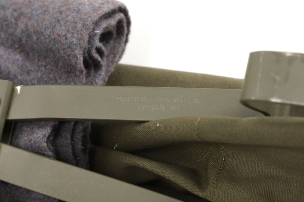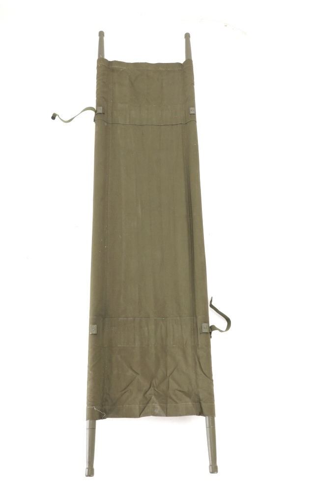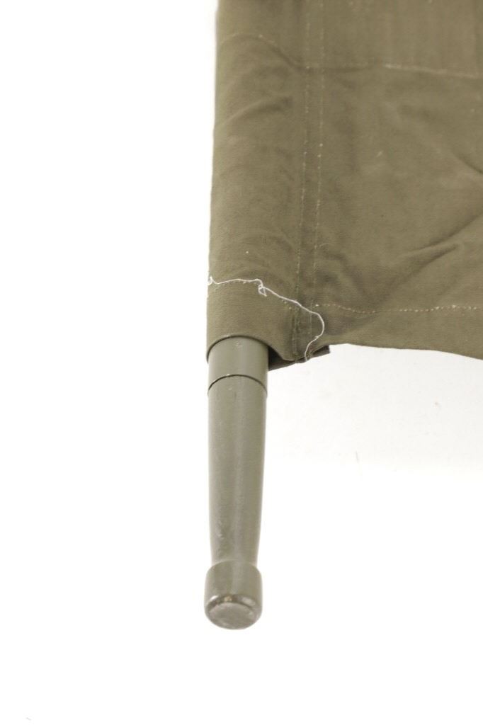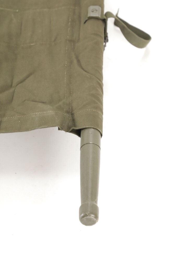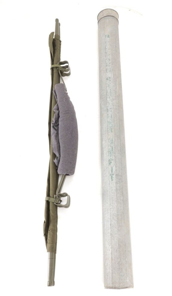 Featured in this lot is this WWII era Bullard Stretcher Outfit galvanized shipping tube. The stretcher features a wonderfully and professionally crafted wood and canvas construction that is shown housed in a large galvanized shipping tube. The condition of this WWII stretcher and galvanized tube is well preserved with some slight wear to the stretcher itself due to age and use but otherwise shows a well preserved condition. The measurements of this galvanized tube is 91 1/4" x 6 3/4" x 6 3/4".The collective weight of this stretcher and tube carrier is 39lb.
