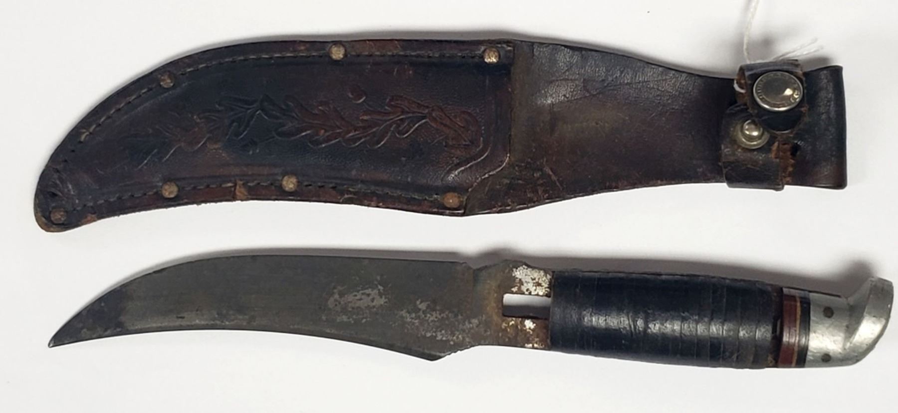 Missing Guard. Needs cleaned up. Comes with leather Sheath