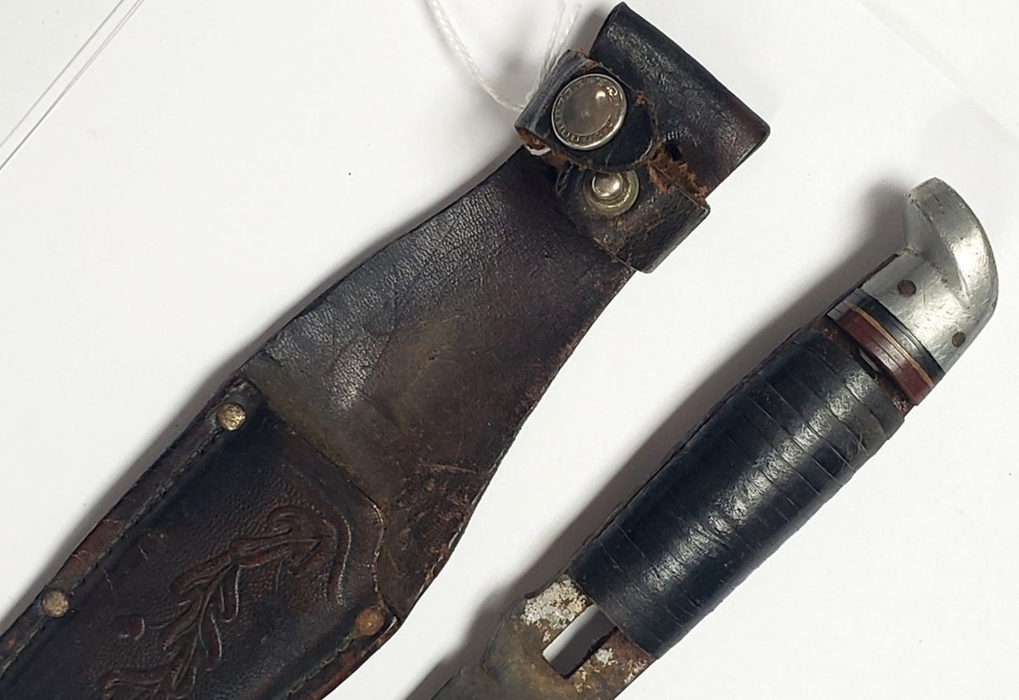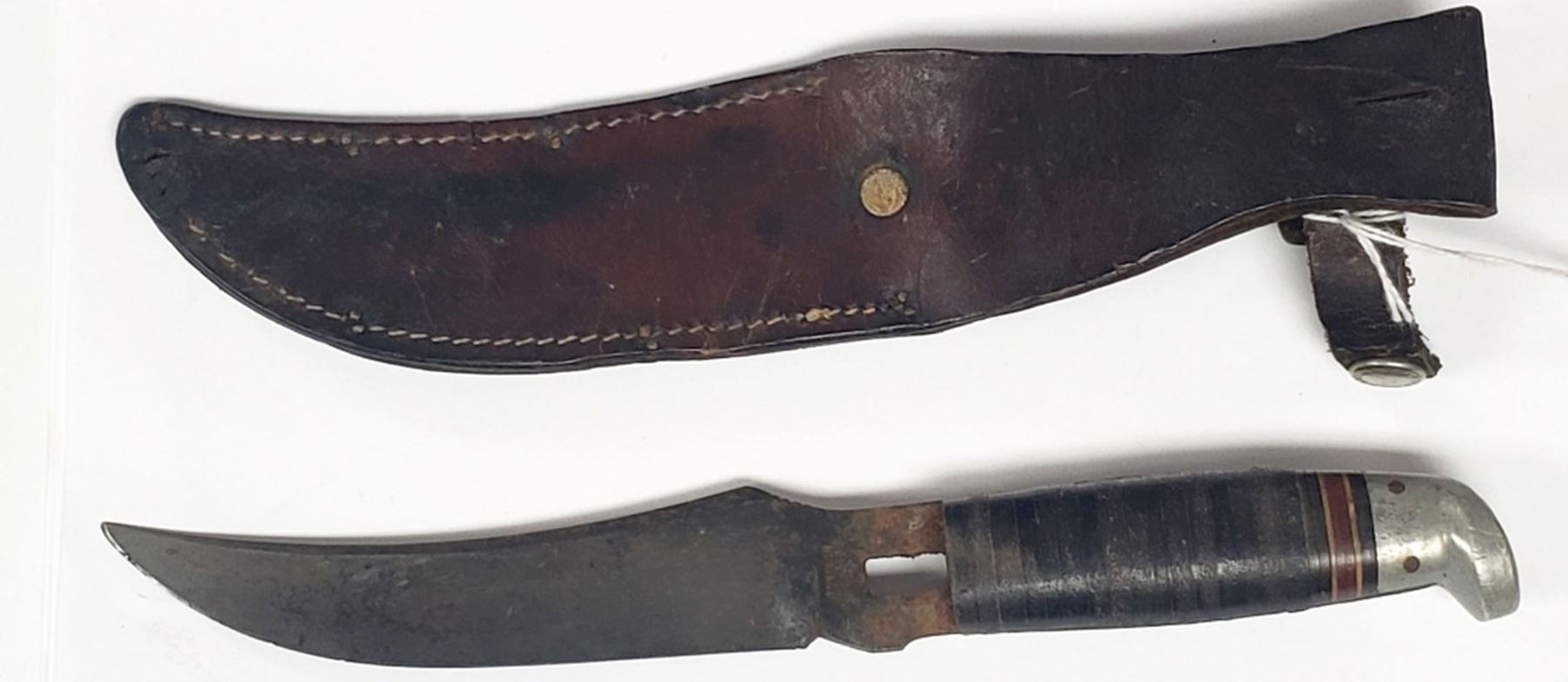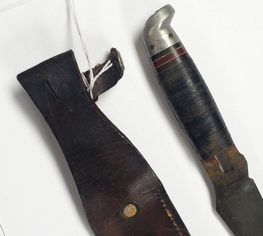 Missing Guard. Needs cleaned up. Comes with leather Sheath