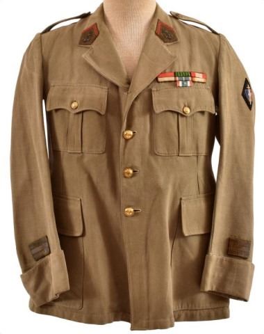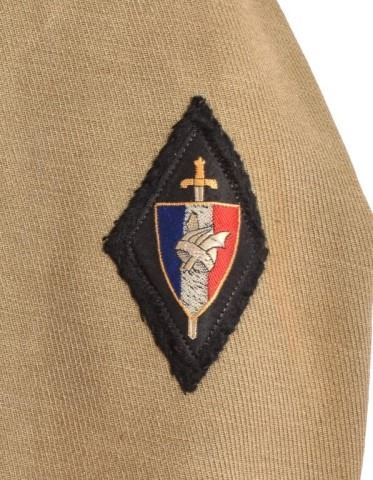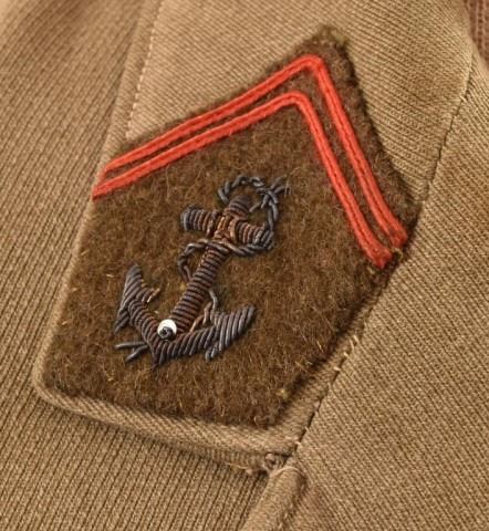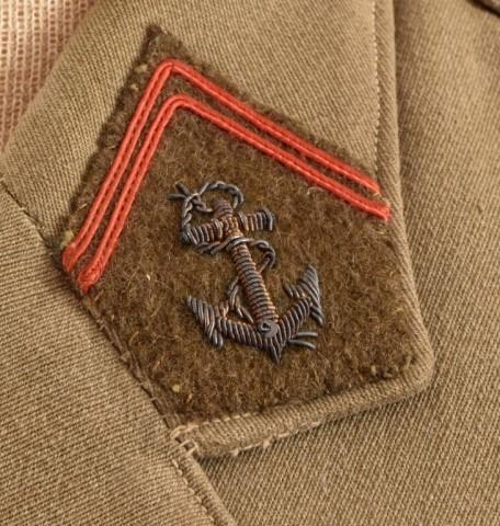 Anchors on collar tab, 1943 Franc note in left breast pocket.