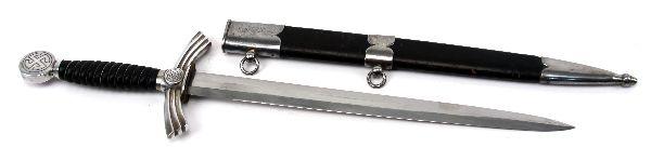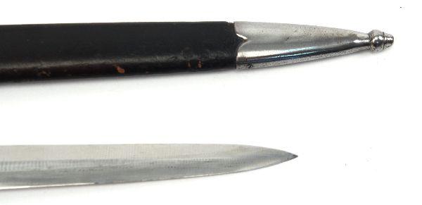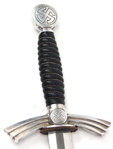 First model "sun wheel" leather grip swastika pommel and unnamed 12 inch tapered blade. Overall very good condition with minimal detractions.