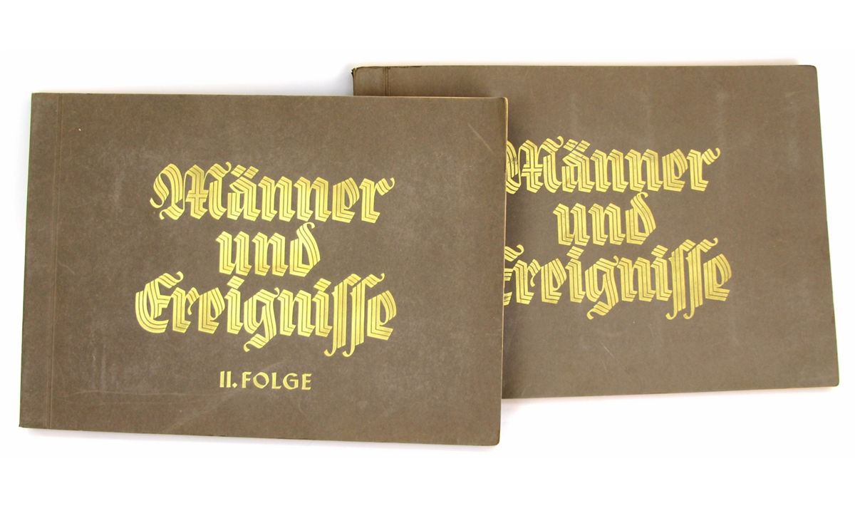 WWII GERMAN 2 ALBUM SET MANNER UND EREIGNISSE Complete 2 volume set of 1934 zigaretten album Country: Germany Size: 13.5x9.5" Condition: Very good.
