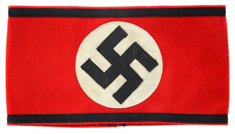 WWII German SS armband. 9 part overlay constructed. Excellent condition. This lot has a reserve.