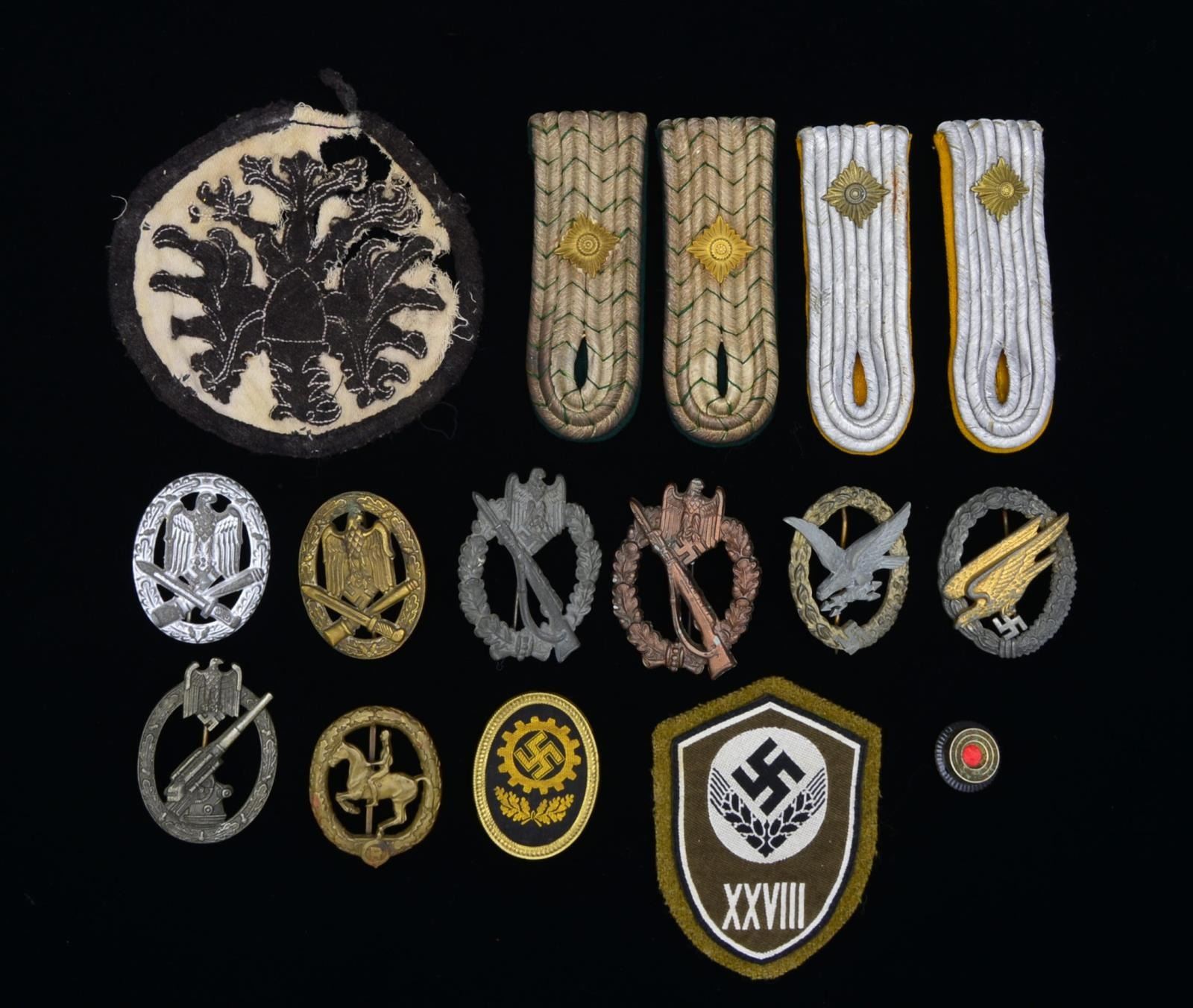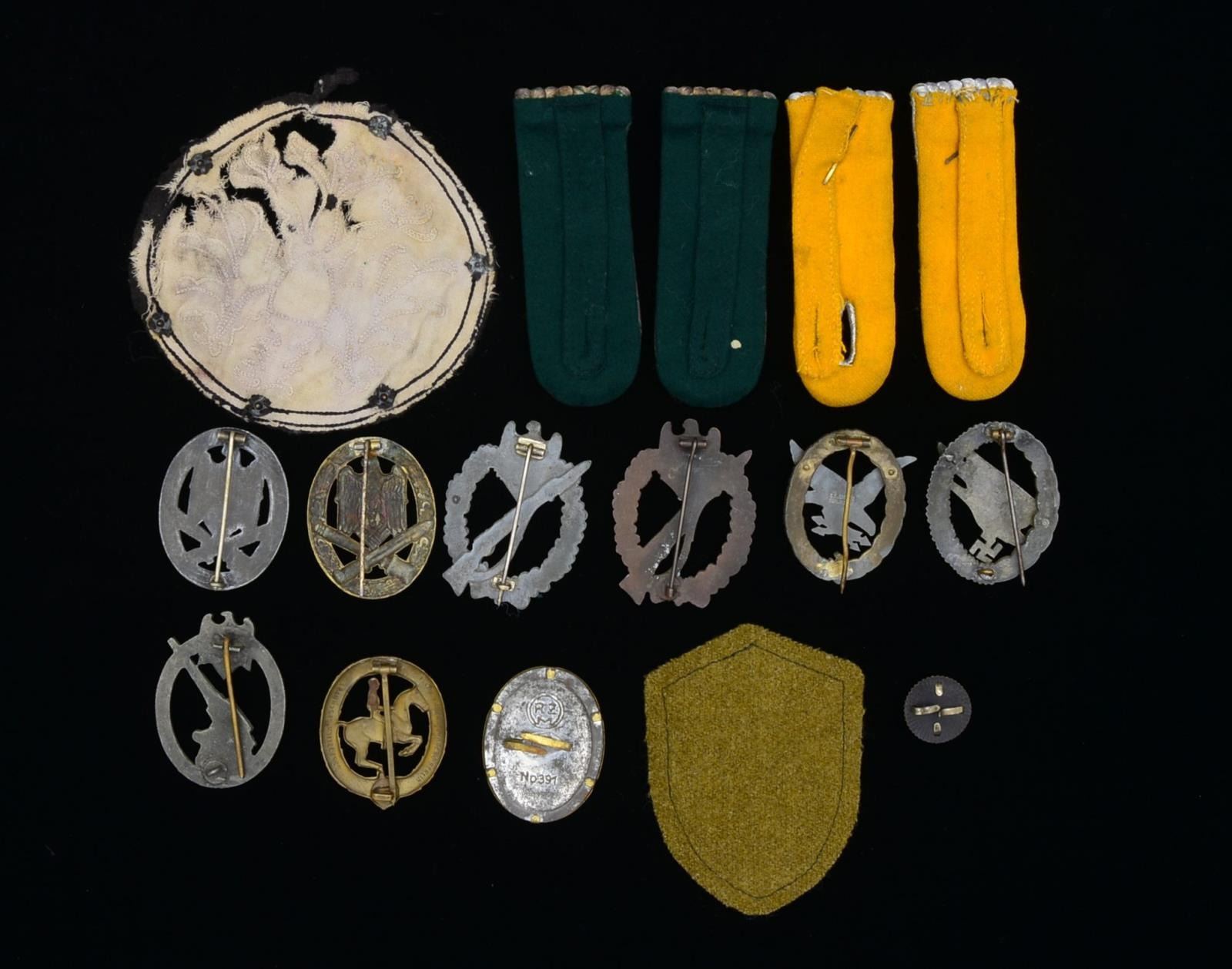 WWII GERMAN BADGES, SHOULDER BOARDS & MORE.