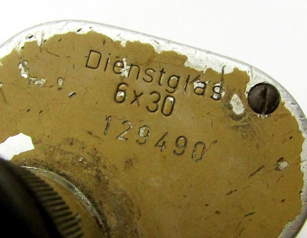 FIELD GLASSES/BINOCULARS. GOOD WORKING CONDITION. HAS DASHED RANGE FINDER IN RIGHT GLASS. COME WITH NON-ORIGINAL LEATHER CASE.
