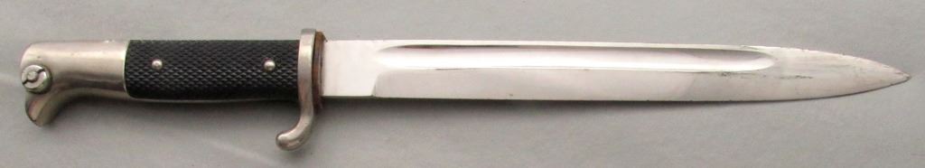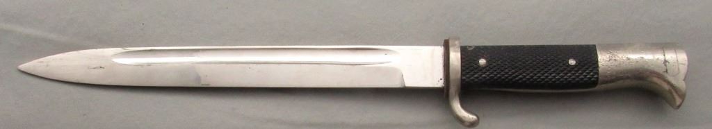 MAY BE A REPRODUCTION. HANDLE HAS SOME DAMAGE AND THERE ARE SOME SMALL NICKS IN THE BLADE.