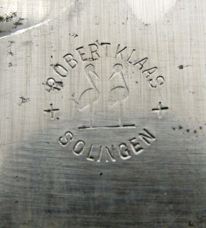 BY ROBERT KLAAS. IN VERY GOOD CONDITION WITH JUST SOME SMALL SCRATCHES. SCABBBARD HAS CHIPS AND SCRATCHES IN THE PAINT.
