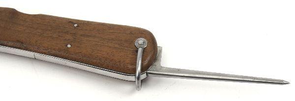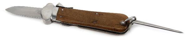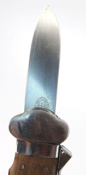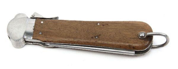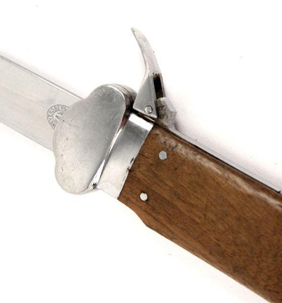 WWII German Luftwaffe paratroopers gravity knife. Marked "Paul Weyersburg & Co, Solingen" on blade. Marked "33" just under thumb tab for spring release. In overall excellent condition.