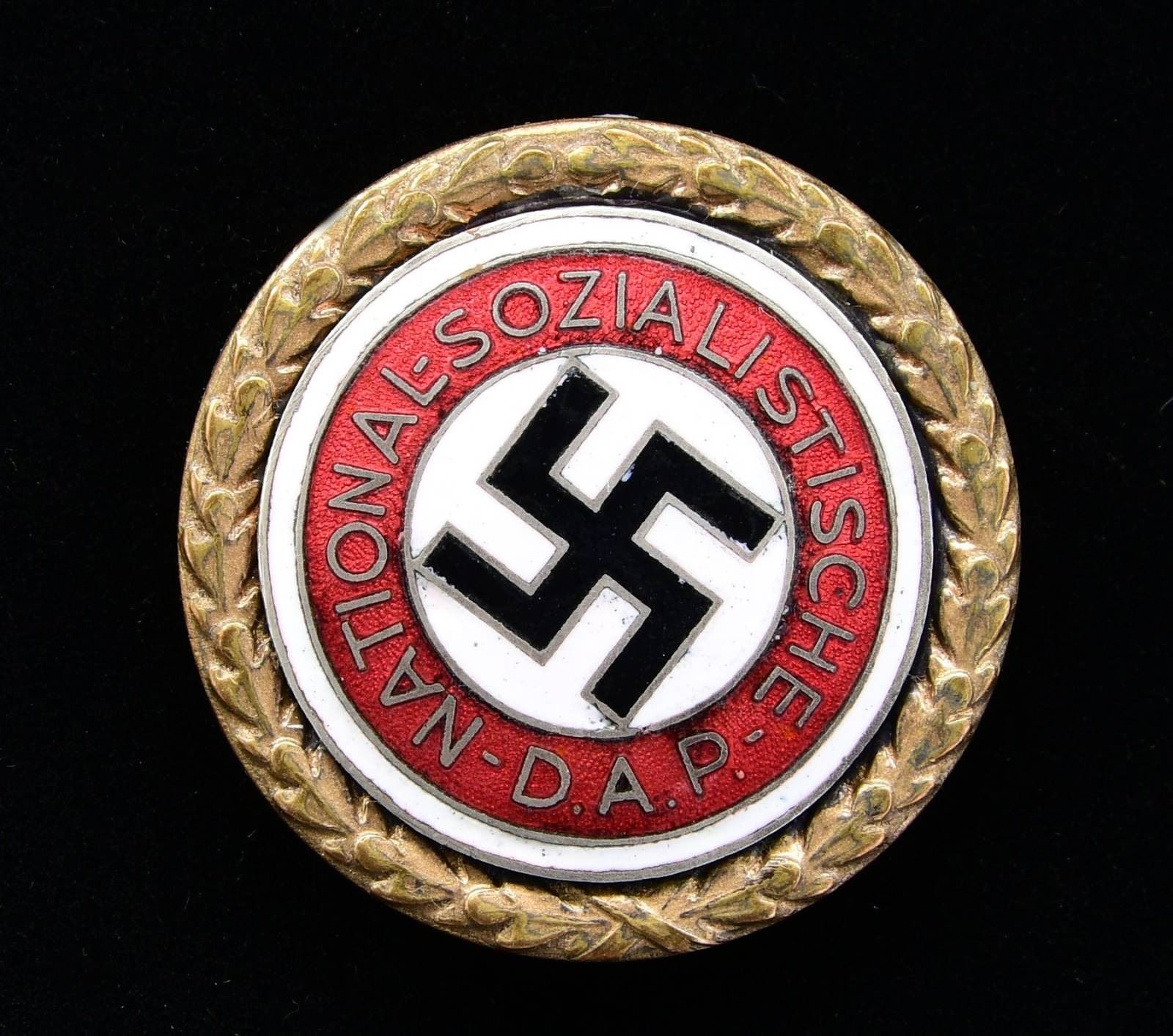 WWII GERMAN GOLD PARTY PIN BY DESCHLER & SOHN.