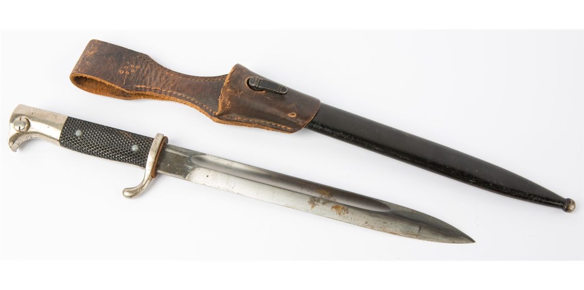 WWII GERMAN K98 DRESS BAYONET W/FROG ROBERT KLAAS Type: Bayonet Country: Germany Blade Length: 9.75" Overall Length: 14.5"