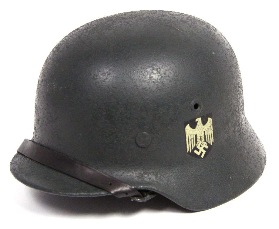 WWII German M-40 helmet, with single decal. Paint and decal are re-finish. Liner appears original, and in good condition. Good display piece.