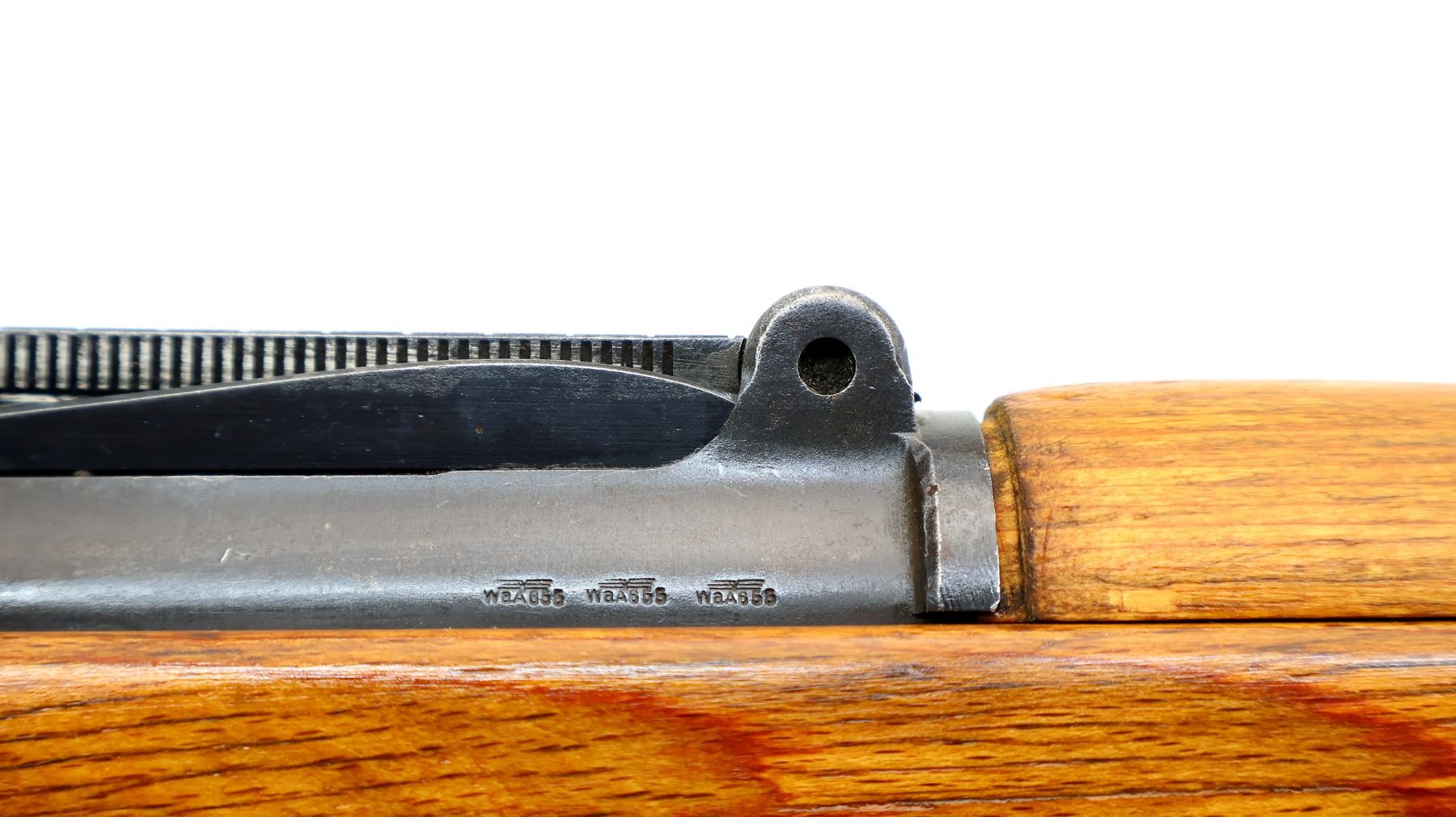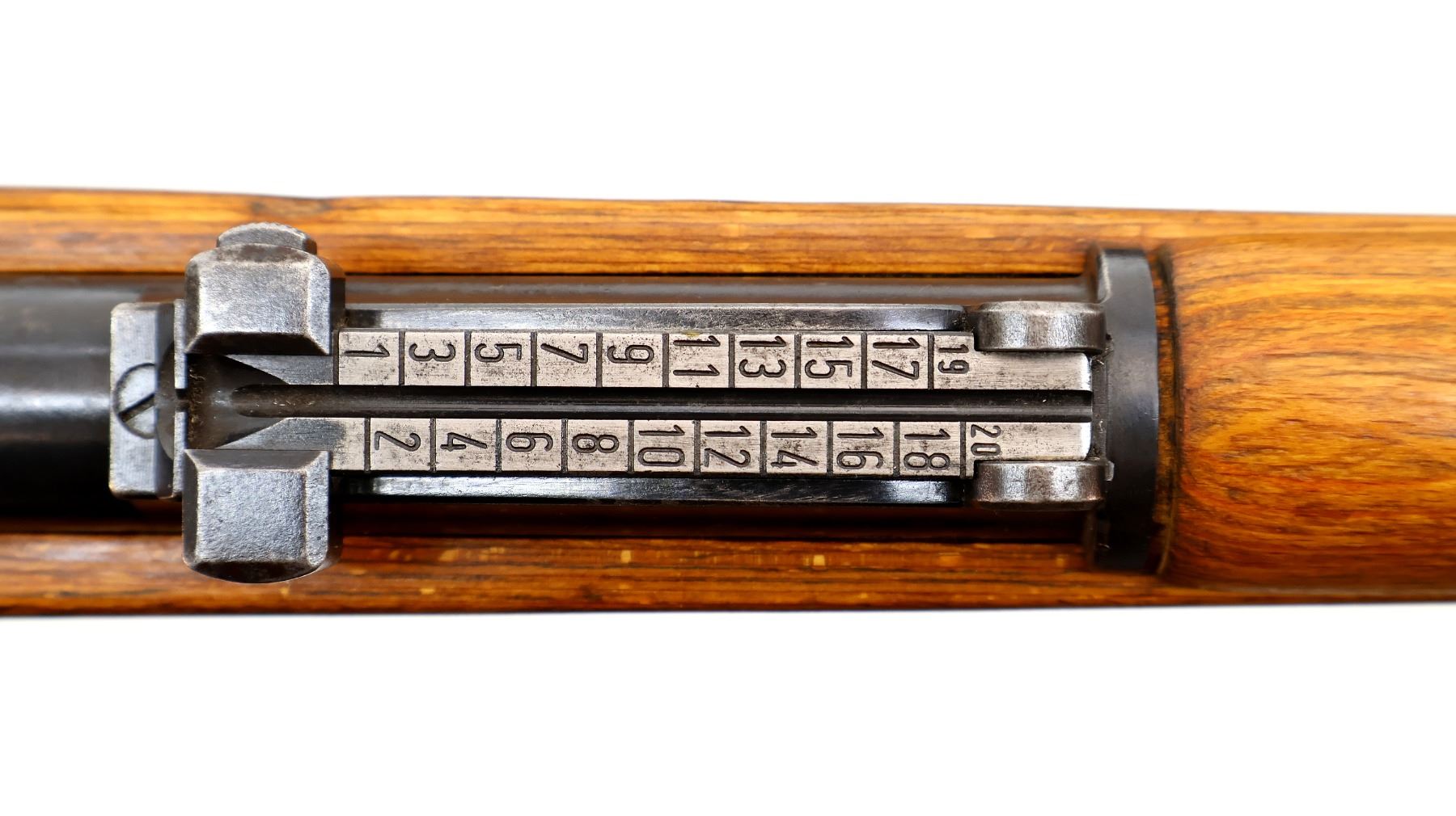 Wear: Metal finish shows some light rust speckles, scratches, handling marks and wear. Stocks show some marks, scratches and wear.