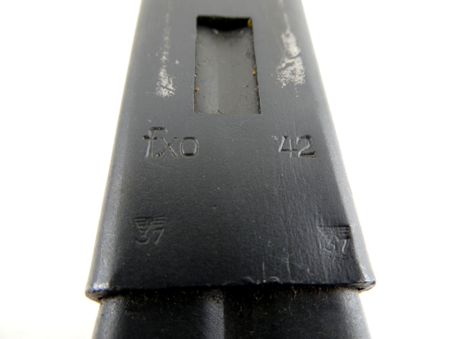 (1) 9MM LUGER, 5/32 ROUND PINNED MAG, BLUED STEEL CONSTRUCTION, MARKED: "FXO 42", "M.P.38U.40", ETC. SEE PHOTOS. PAL REQUIRED.