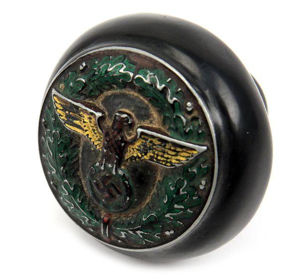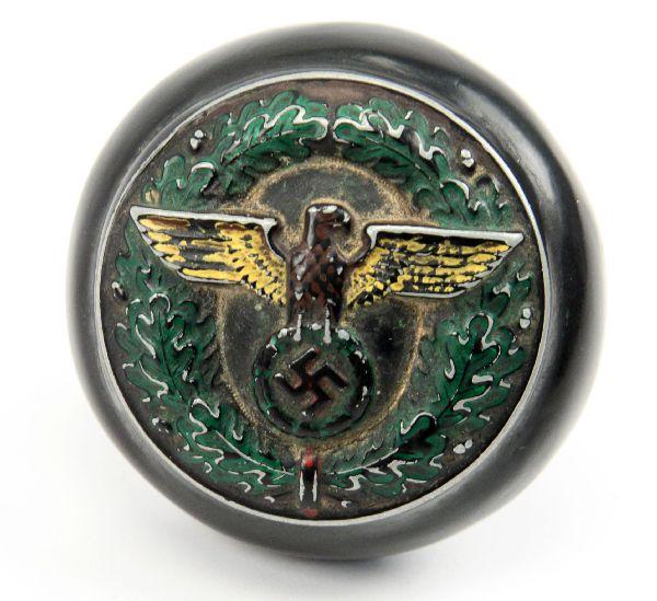 Gear shifter knob with Third Reich National emblem in middle. Appears similar to a Volkswagen KpM shifter. Very good condition.
