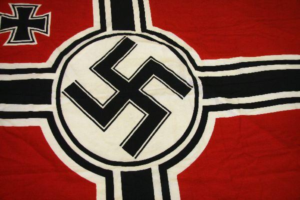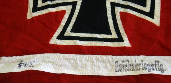 150x200 Printed wool German Third Reich Kriegs flag (war flag) with original stampings and chord. Very good condition with some pinholes